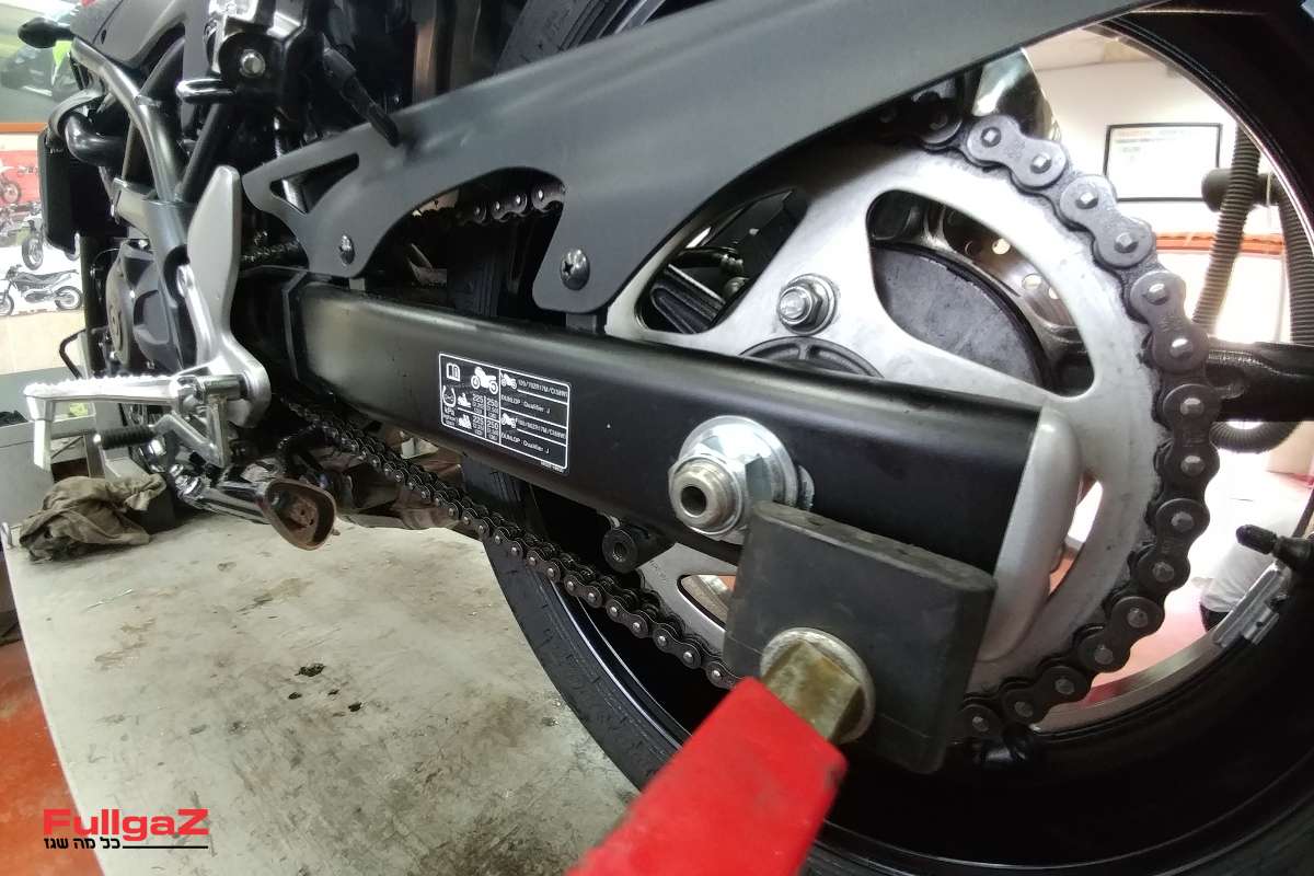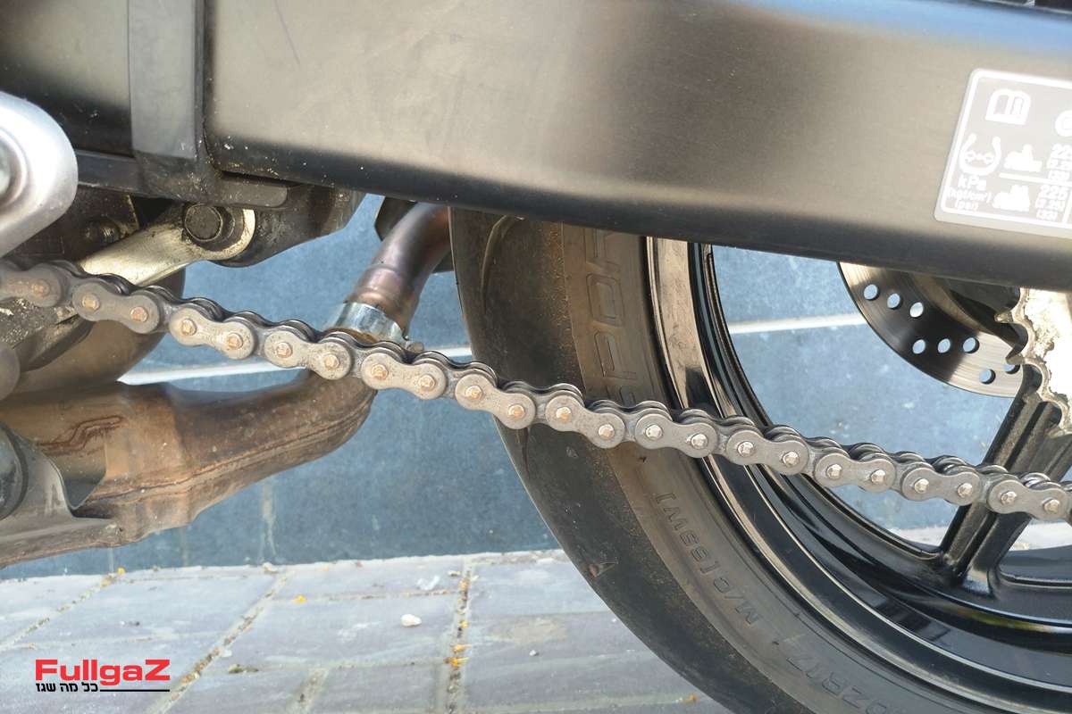 אחרי חצי שנת שימוש וכ-15 אלף ק"מ, בדקנו את הבלאי המצטבר של ה-SV650. סט צמיגים, כאמור, כבר החלפנו, אבל פרט לצמיגים אחרי 15 אלף ק"מ גם שרשרת ההינע המקורית התבלתה ודרשה החלפה. גלגלי השיניים נראים טוב מאוד, אולם מקובל להחליף סט מלא של שרשרת וגלגלי שיניים. נציין כי השרשרת לא עברה אצלנו חיים קלים, וגם התחזוקה שלה הייתה בסיסית בלבד וכללה שימון מדי פעם וזהו.