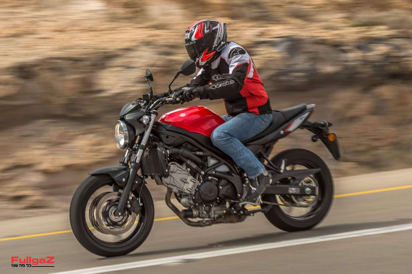 - את ההתנהגות. נכון, זו לא התנהגות של אופנוע ספורט מושחז עם שלדה סופר-קשיחה ובולמי איכות, וגם לא של נייקד גדול מודרני כמו אחיו הגדול, ה-GSX-S750. ב-SV650 מותקנים בולמי זעזועים פשוטים מאוד, אבל בשילוב עם שלדת מסבך משולשי פלדה קשיחה ותכנון הנדסי נכון, המתלים הפשוטים האלה מספקים יציבות גבוהה וביצועים טובים בסך הכל. והכי חשוב – הוא מאוזן, והמתלים עובדים בדיוק כמו שאתה מצפה מהם, בלי פינות חדות. מסתבר שב-2017 גם אופנוע פשוט וזול יודע לתת ביצועי כביש טובים ומאוזנים. ה-SV650 הוא ההוכחה לכך.