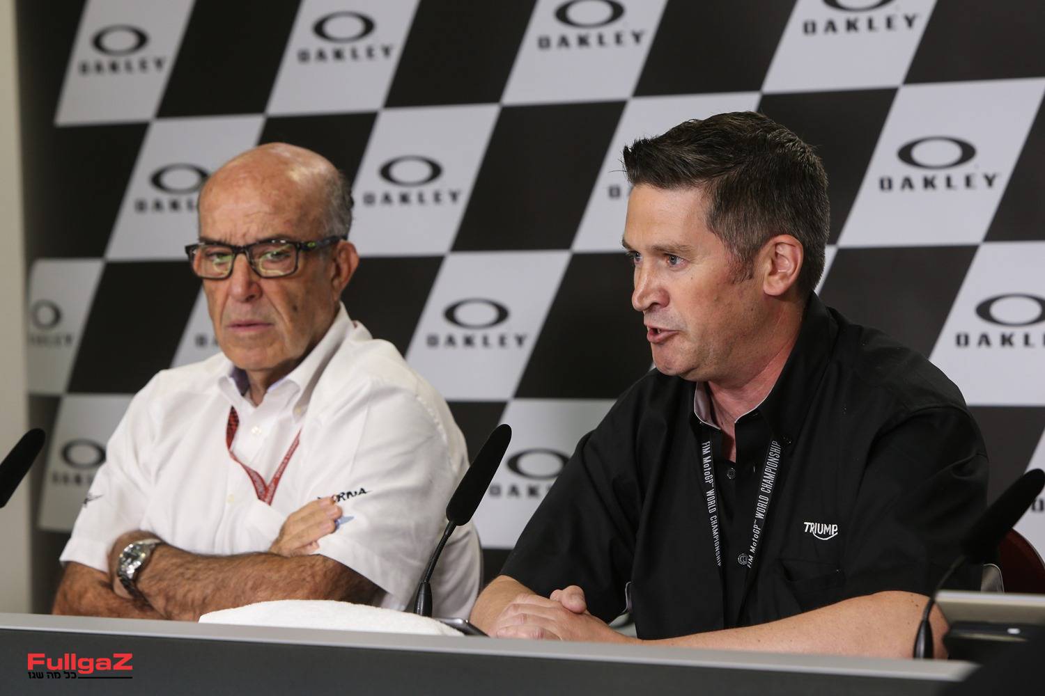 עם כרמלו אספלטה, מנכ"ל דורנה, בעת ההכרזה במוג'לו על אספקת מנועי טריומף ל-Moto2