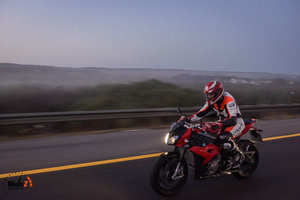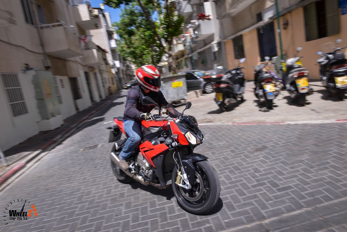 למרות שתנוחת הרכיבה מותנה מעט ויש פה כידון במקום קליפ-אונים, הכידון רחב אך משוך מעט כלפי מטה והתנוחה קרבית למדי. ברגעים הראשונים התנוחה מרגישה הרבה יותר כמו של אופנוע ספורט מאשר של נייקד. סיבוב קטן בעיר יחשוף שגם זווית הצידוד לא שונה מהותית מזאת של אופנוע ספורט, עם כידון בדיוק בגובה המראות של המכוניות. גם המצמד והגיר מעט קשים, והקוויקשיפטר עובד פחות טוב במהירויות נמוכות. פחות כיף, אבל זה לא משנה. הבימר הזה הוא כנראה אחד הדברים הפחות תקינים פוליטית שיצאו מהמפעל הבווארי, וגם בעיר קשה שלא להתאפק ולפתוח גז רק כדי שהאחורי יפרפר כמעט בכל הילוך והקדמי יעלה לווילי בכל רמזור, רק מהזנה מהירה של הגז. הבלם הקדמי, עם שני דיסקים בקוטר 320 מ"מ וקליפר מונובלוק של ברמבו, מספק עוצמה ראשונית פסיכית. ברמה שלדעתנו אפילו מעט מיותרת באופנוע לכביש הציבורי. הוא מצריך כיול מחדש למוח כשמתמשים בו לראשונה, ועדיף לעבור ללחיצה באצבע אחת, שגם היא תשתול את הפרונט עם לחיצה בעוצמה של משב רוח קליל.