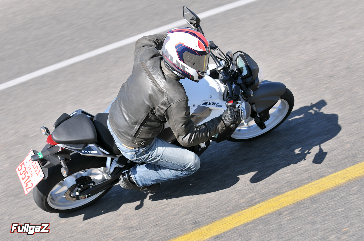 ביוסאנג החליפו את מנוע הווי-טווין מה-GTR וה-GT הערום במנוע סינגל באותו נפח, אשר מפיק על פי היצרן כ-28.5 כוחות סוס (שניים יותר מאשר בהונדה CBR250R, שלושה יותר מאשר בק.ט.מ דיוק 200). שחרור קלאץ' מחזיר אותנו לימי התיכון וה-50 סמ"ק העליזים – אם לא נותנים ל-X בגז הוא לא עושה סימנים של זז לאיזשהו מקום. לוקח מעט זמן לעשות רה-קליברציה לדרך שבה יד ימין ושמאל מתפעלות את הגז והקלאץ', ואפשר לסכם את זה בצמד המילים "תן לו!". המנוע ביוסאנג, על אף המספרים לעיל, מרגיש מעט עצל, לפחות ביחס לדרך בה זכור לנו הק.ט.מ דיוק 200. רק בשליש העליון של טווח הסל"ד דברים מתחילים לקרות וגם שם, הוא מרגיש מעט חלבי.
