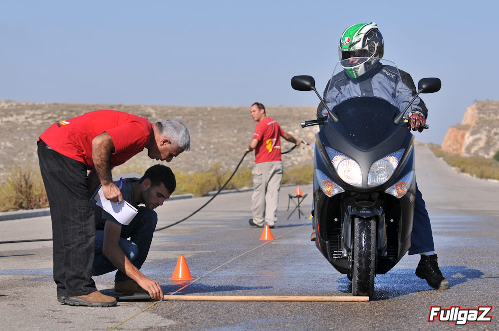 עוברים לטימקס. העובדה שמדובר בקטנוע מקלה קצת על העניינים, ותוך 2-3 בלימות אלי מתייצב על ערך אופטימלי של 42.3 מטרים. אפשר עכשיו לעבור לבלימה עם ABS. אלי מתנפל על הבלמים, ובזכות הפעלת המערכת כבר בשנייה הראשונה גם הפעם הוא מקצר את מרחק הבלימה שלו בכ-6 מטרים ועוצר על 36.2 מטר. עם הבנדיט התרגיל חוזר על עצמו: 49 מטרים ללא ABS ו-40.5 מטרים עם ABS. הטכנולוגיה מצליחה הפעם לעזור לאלי להוריד 8.5 מטרים ממרחק הבלימה שלו.