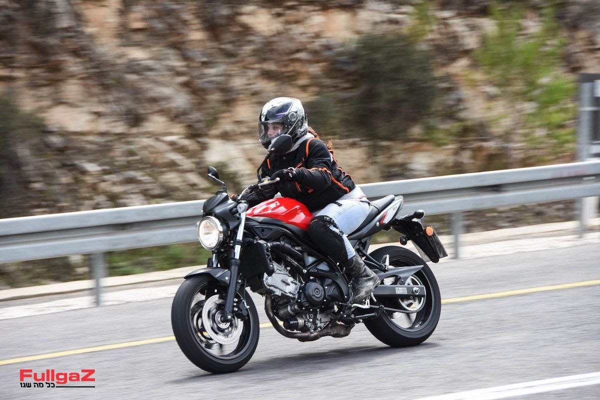 ה-SV650 היה לי שותף מעולה, ולא יכולתי לבקש אופנוע טוב יותר ליום שכזה. גובה המושב, 785 מ"מ, היה לי מצוין. רגל שלמה על האספלט, נותן ביטחון ומרגיע. ההתנעה שלו קלה – לחיצת כפתור והוא מתעורר לחיים. תנוחת הרכיבה קצת שונה מהאופנוע שלי, והיא מאוד נוחה לרגליים לגב ולידיים כאחד, רגליות ההילוכים והבלם האחורי בדיוק במרחק הנכון, צורת מיכל הדלק צרה ונותנת נוחות בהצמדת הרגליים, הקלאץ' 'חמאתי', רך ועושה חיים קלים, המתלים רכים ונעימים, ומקנים אחיזה טובה גם על הקטעים היותר משובשים, והמנוע חזק אבל נעים מאוד לשימוש. התלהבתי מאוד מהאופנוע ומיום הרכיבה הזה ונהניתי מאוד מהשותף שמערכת פול גז סידרו לי.