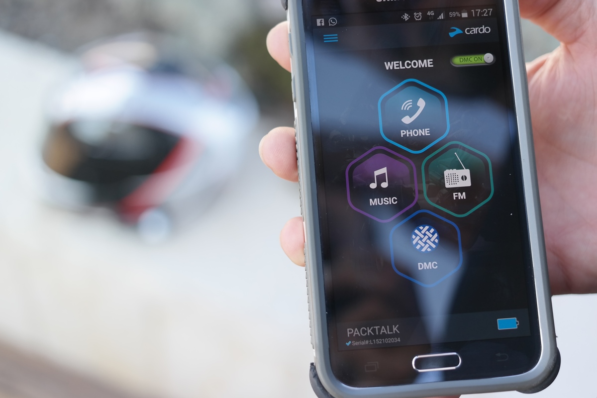 זה התחיל לאט. במקום לקרוא את ההוראות המפורטות כדי להגיע לכפתור שמשייך בין הטלפון לדיבורית – העדפנו ללחוץ על הגלגלת פעמיים ולהקשיב לגברת מקריאה את התפריט, עד שהיא מגיעה לתפריט של האפשרויות המתקדמות. לאחר מכן באפשרויות המתקדמות יש להקשיב לתפריט עד שהוא מגיע לאפשרות שיוך לסלולרי. למען ההגינות, מהרגע שמתחברים החיים נהיים הרבה יותר קלים והדיבורית מגיבה מהר מאוד. להבדיל מה-Q3 שלי שלוקח לה כמה וכמה שניות לזהות שהסלולרי בסביבה, ה-PACKTALK מתחברת תוך שבריר שנייה והאפליקציה של קארדו מגיבה במהירות ועוברת למצב פעיל בעצמה.