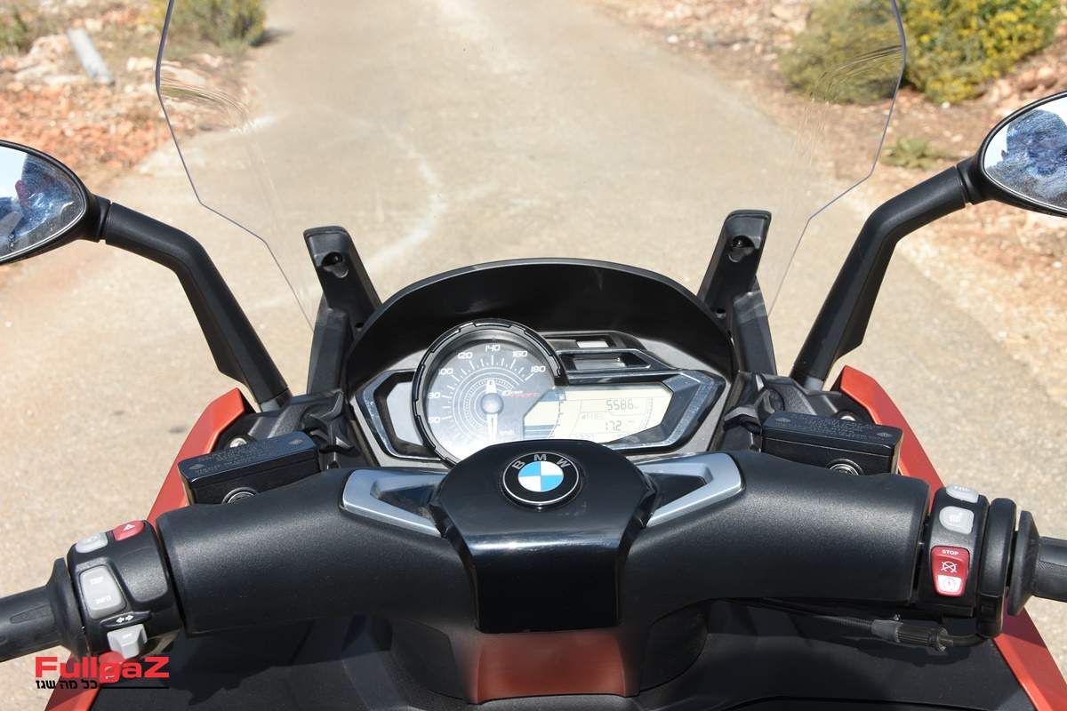 חסרון עיקרי שצף במהלך הרכיבה נובע ממשקף הרוח. ניתן לכוונו לשלוש רמות, כשהנמוכה מביניהן מציבה את המשקף מחוץ לטווח הראייה. בזווית הגבוהה מיגון הרוח טוב מאוד עבור 170 וקצת הסנטימטרים שלנו, אך קצהו העליון היה באמצע קו העיניים שלנו. הבעיה הייתה במעבר בין המצבים – המנגנון שאיתו מגיע ה-C650 כולל שני ברגים גדולים שצריך לפתוח, להרים או להוריד, ואז לנעול, מה שלא ניתן לעשות בזמן רכיבה ובדרך כלל גם לא בעצירת רמזור זריזה. נשמע זניח, אבל אותנו זה הטריף, במיוחד כשב-GT יש כפתור חשמלי פשוט. המורכבת שישבה מאחור סבלה במיוחד מהרוח, בין היתר בגלל המרווח הגדול בינינו, ובמהירות של מעל 120 קמ"ש גם במצב הגבוה היא התלוננה על מערבולות חזקות. מלפנים המצב היה טוב, אך בהחלט פחות מוצלח מאשר ב-GT.