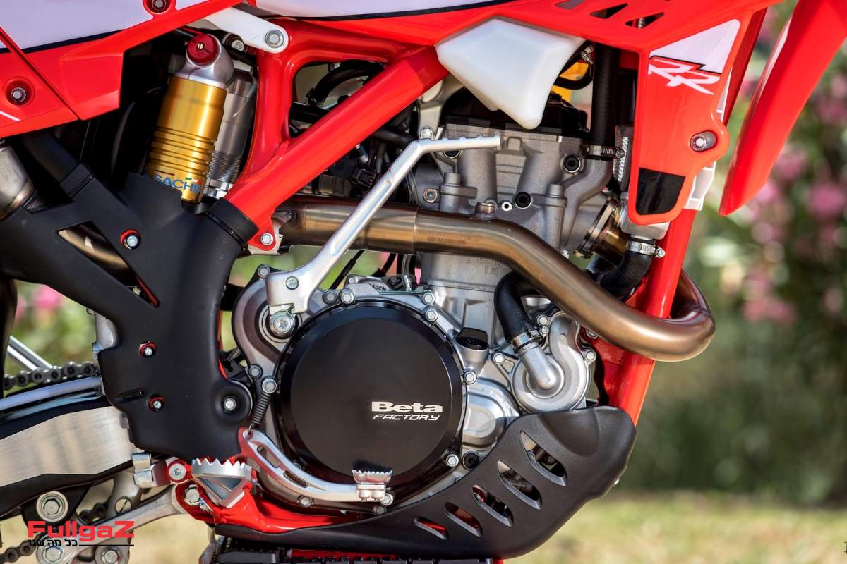 המנועים מרובעי הפעימות של בטא הם מייצור עצמי של החברה. הם אולי לא מהקטנים והקלים ביותר (אם כי לא בטוח), אבל הם מרגישים צרים וכמעט ואינם בולטים מהשלדה כלפי חוץ, כשהתחושה היא שהם מוגנים למדי שם בפנים. המתנע החשמלי מעיר לחיים את המנוע בקלות ובזריזות. מערכת הפליטה המתפתלת בצמוד לשלדה והמנוע (ונראית גם היא מוגנת למדי) היא מייצור עצמי של בטא, והסאונד מתון ונעים, אפילו בסל"ד גבוה. מערכת ההזרקה של סינרג'ט בשילוב גוף מצערת 42 מ"מ מעבירים כוח אחיד, רציף ונעים, ללא שום השהיות או גמגומים וקפיצות לכל אורך הסל"ד.