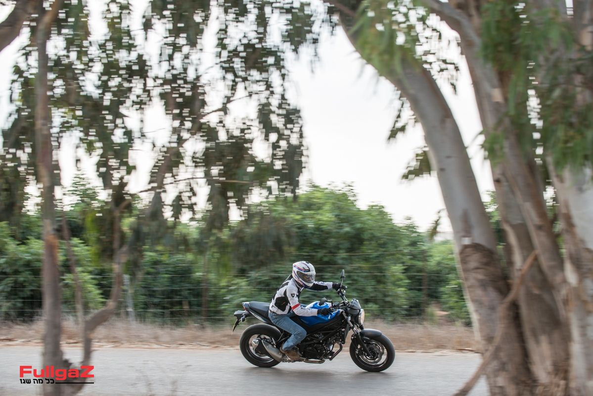 השליטה ב-SV650 קלה מאוד, כמעט אינטואיטיבית. גובה מושב של 785 מ"מ מאפשר לכל רוכב להגיע עם 2 רגליים אל הקרקע, המיכל הצר בשל מנוע ה-V מאפשר לחבוק אותו בקלות, ורק הכידון צר מדי עבורנו ונתן תחושה של צעצוע. אותו היינו מחליפים ראשונים לכידון שרחב יותר ב-2-3 ס"מ לכל צד, ותנוחת הרכיבה הייתה משתפרת פלאים, ואיתה סביר להניח שגם זריזות ההיגוי. היציבות בפניות, אגב, מעולה, ואהבנו מאוד את ה-SV על כבישים טכניים.