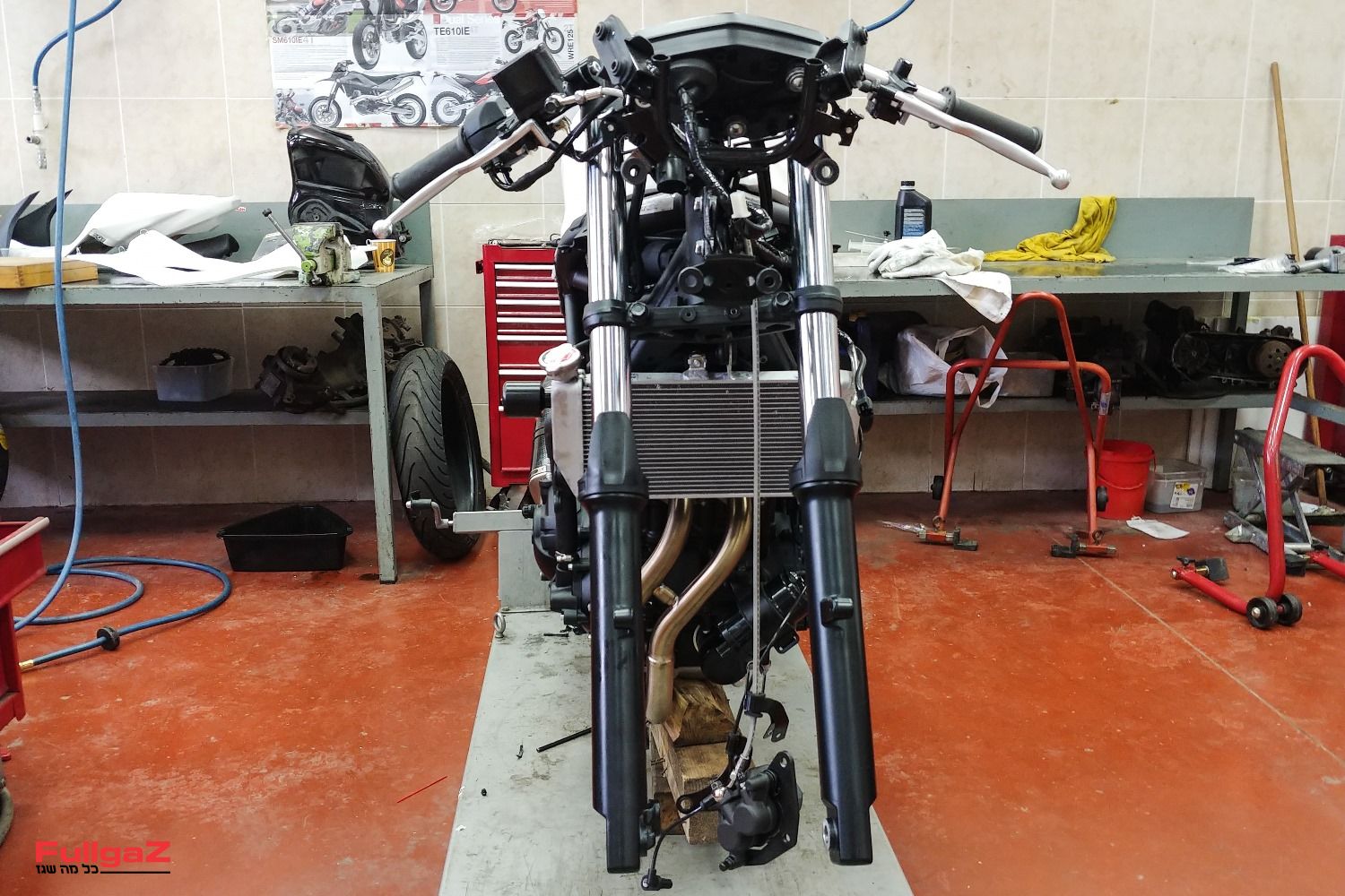 עד שיגיע הקארטרידג' הנכון לבולם הקדמי השמאלי, המשכנו בעבודה על האופנוע. יש עוד הרבה מאוד חלקים שצריך להרכיב. בינתיים הפרונט יחכה.