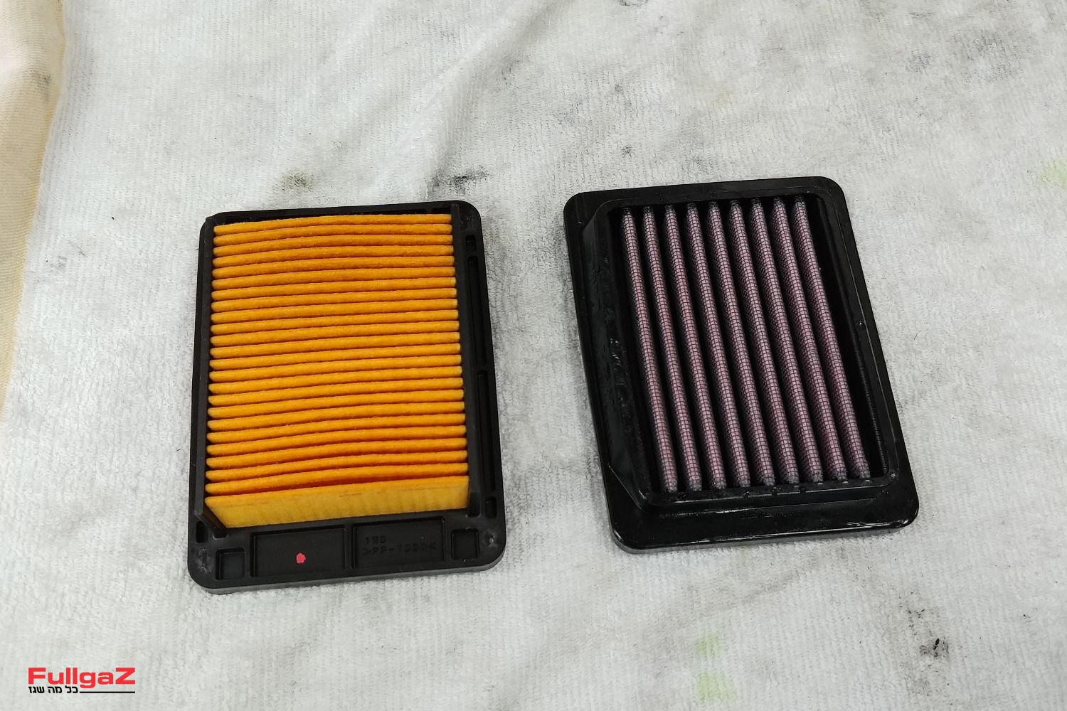 את מסנן האוויר החלפנו ב-3 דקות עבודה. 3 ברגים של המכסה, שליפת המסנן המקורי, הכנסת המסנן החדש של DNA – הפתוח יותר, וסגירת הברגים. כעת, עם מערכת הפליטה ומסנן האוויר הפתוחים, יש צורך בערכת פאוור קומנדר להעשרת התערובת, והיא תגיע בזמן הקרוב.