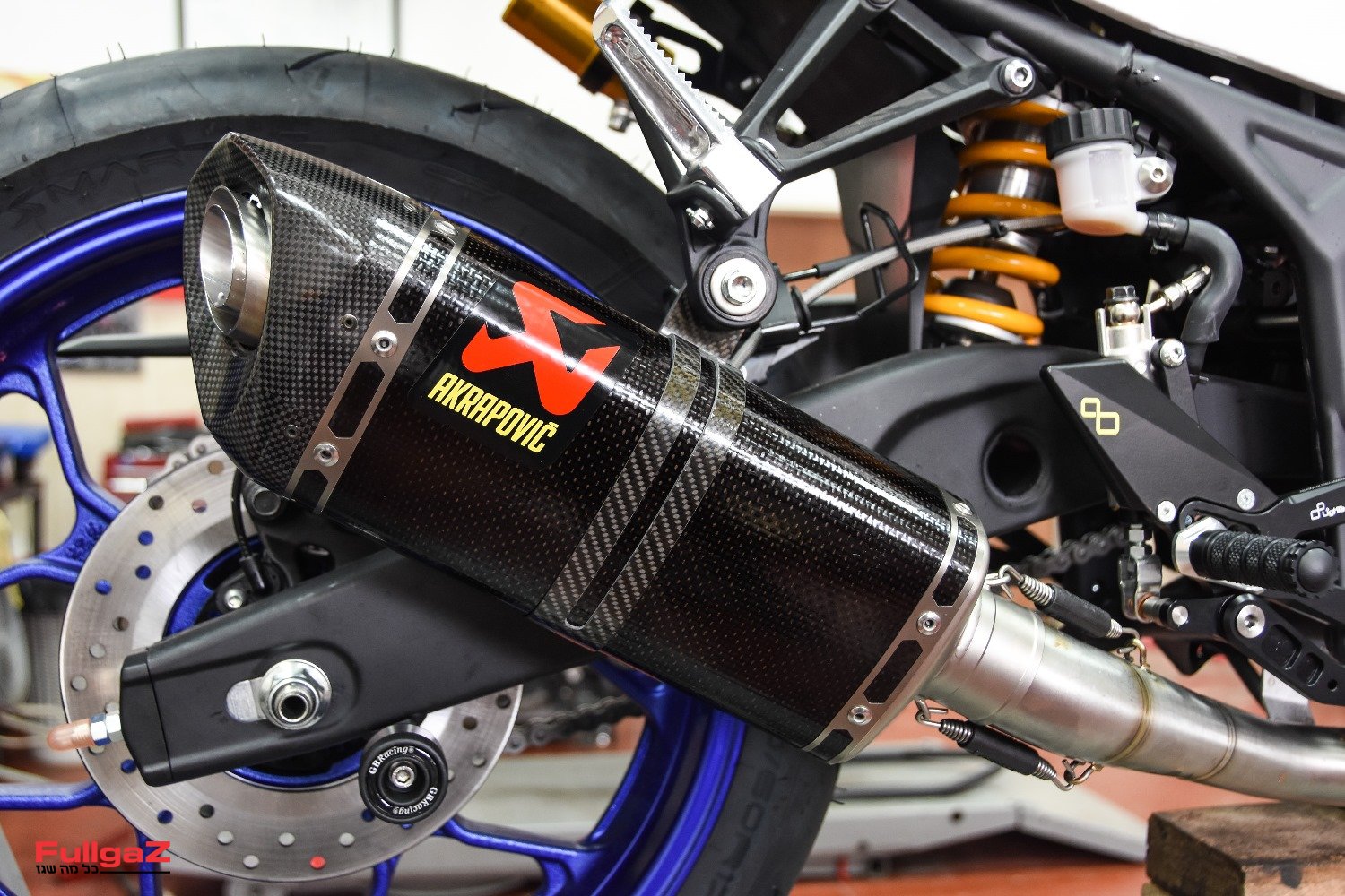 בינתיים הגיעה מערכת הפליטה המושלמת למרוצים של חברת אקרפוביץ'. זוהי מערכת פליטה המיועדת למרוצים בלבד, ומבין 2 דגמים של אקרפוביץ' ל-R3 המיועדים למרוצים – זוהי החזקה יותר. לפי הנתונים של אקרפוביץ' היא מורידה 5.1 ק"ג ממשקל האופנוע ביחס למערכת הפליטה המקורית (ששוקלת יותר מ-9 ק"ג), והיא מעלה את ההספק בקצת יותר מ-3 כ"ס.