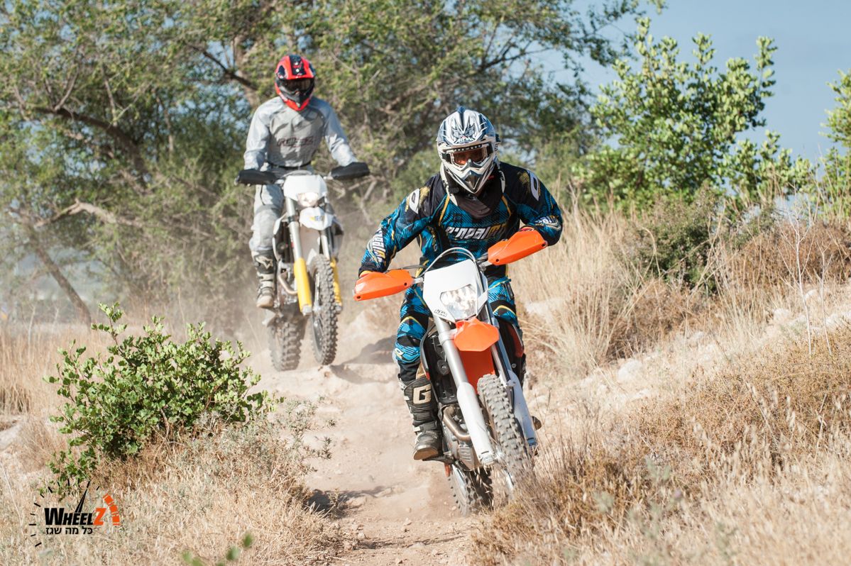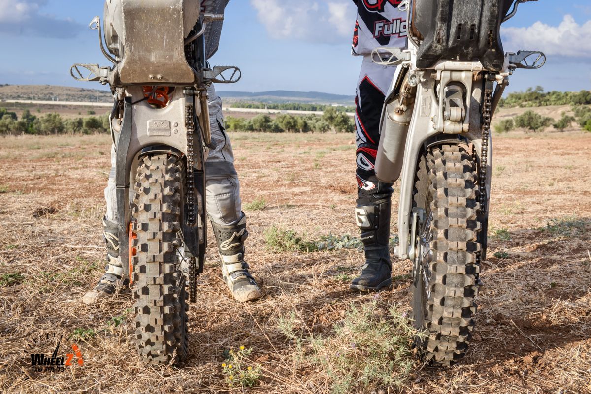 כדי לבדוק איזו מהמערכות מתפקדת טוב יותר דינמית היינו צריכים לרכוב על צמד הכלים כשהם מכוונים בדיוק למצב הסטנדרטי שלהם. אז כיוונו את הסאג בשני הכלים בדיוק לפי הוראות היצרן, פרקנו את כל העומסים מהפרונט וסידרנו 'דיאגונל', הידקנו את המשולש התחתון עם ידית מומנט כדי למנוע חיכוכים מיותרים בטלסקופים, והחזרנו את השיכוכים – גם מלפנים וגם מאחור – למצב הסטנדרטי. בנוסף, הצמיגים בשני הכלים היו חדשים, ובכולם הקפדנו על לחץ אוויר של בדיוק 15PSI. כעת, עם בולמים מכוונים ובמצבם המקורי, יצאנו לרכב במסלול ספיישל שקצת טחון בעונה הזו של השנה, במסלול סינגל מסולע ומיוער, וגם קצת בשבילים מהירים יותר או פחות. תוואי שטח ממוצע של רוכב אנדורו ישראלי.