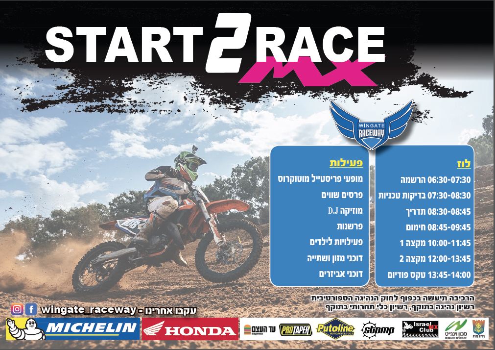 הסבב הראשון של אליפות המוטוקרוס לחובבים Start 2 Race MX יתקיים ביום שישי הבא, 24.1.20. כפי שכבר כתבנו – אליפות המוטוקרוס לחובבים Start 2 Race מיועדת לרוכבים עממיים וחובבים, ומטרתה לאפשר לרוכבים עממיים וחובבים להיחשף לעולם המרוצים ולהתחרות במסגרת ידידותית ופחות תובענית, וזאת על-מנת להרחיב את מעגל המשתתפים במרוצי מוטוקרוס ולהציף כישרונות ודור חדש של ספורטאים.