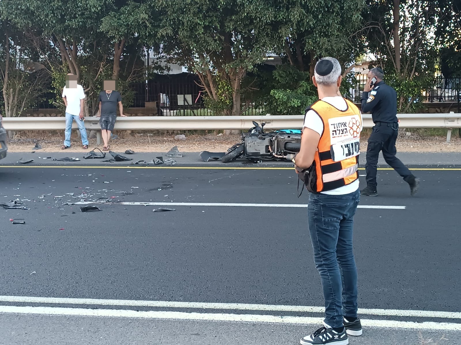 זירת התאונה בפתח-תקווה שבה נהרג הרוכב בן ה-40