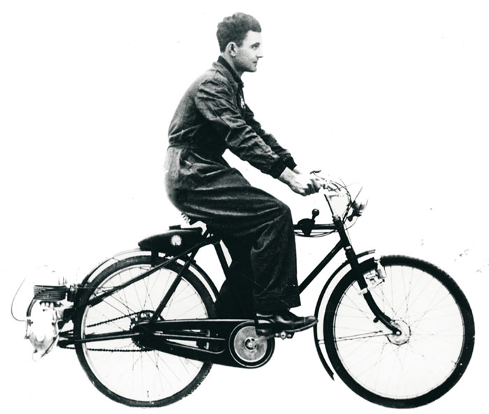 המנוע הראשון שחובר לשלדת אופניים