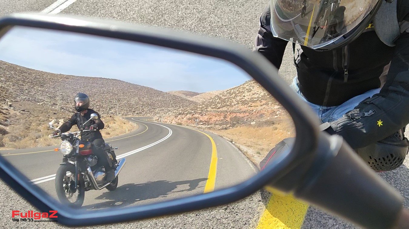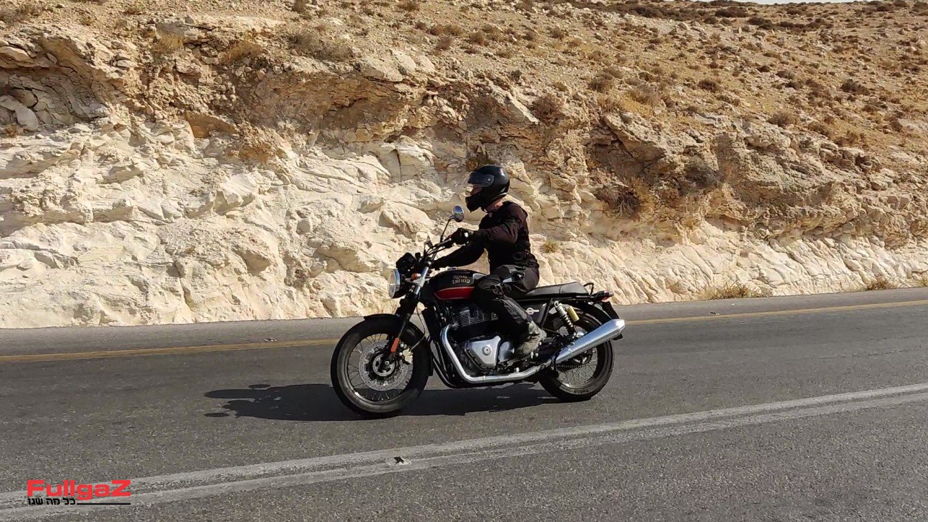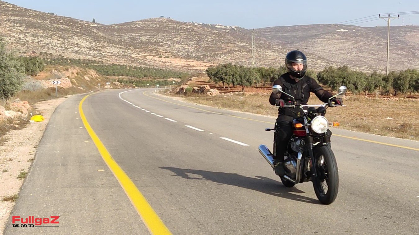 יש משהו כל כך נכון וכיפי בצורה שבה האנפילד משייט בכביש 578 – דרך אלון. הפשטות של האינטרספטור ממתנת את יד ימין, ובשיוט על 110-100 קמ"ש הנופים לא רצים מהר מדי – אפשר להתעכב כמה שניות עם המבט על השלטים החומים שמפנים למעין או חורבה, על רועי הצאן עם העדרים בצידי הכביש או על הגבעות מסביב. אפשר גם להעלות את הקצב – אבל מי רוצה לסיים את הרכיבה כל כך מהר?