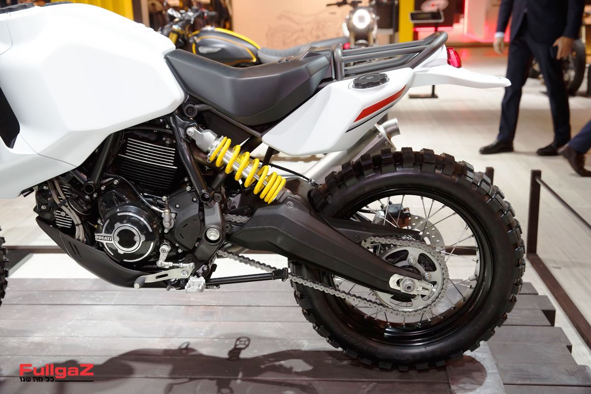 לדזרט X יש את השלדה של הסקרמבלר 1100, אך מערכת המתלים הוגבהה ומהלכה הוארך בהתאם לייעוד הצפוי. ניתן לזהות מערכת פליטה קרבית של טרמיניוני. לדגם הקונספט מיכל דלק אחורי נוסף הממוקם בכנף האחורית, פרט למיכל הקדמי הענק בעל 2 הפקקים. מלפנים יש גלגל 21″ קרבי (לעומת 19″ בסקרמבלר) ומאחור גלגל 18″ עם צמיגי קוביות לשטח. ותראו את הפנסים מלפנים.