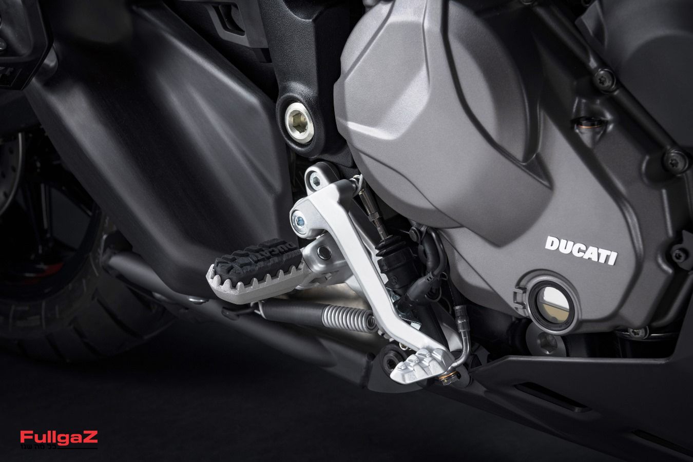 בדוקאטי מדגישים את המושב החדש אשר צר יותר ומאפשר יותר טווח תנועה לרוכב ומורכב. בהשוואה ל-950, גובה המושב יורד ב-10 מ"מ לסך של 830 מ"מ, ורגליות הרוכב – חדשות ולקוחות מגרסת ה-V4 – ממוקמות 10 מ"מ נמוך יותר. הבולמים קדמיים הפוכים של קאיאבה בקוטר 48 מ"מ ומציעים כיוונים מלאים ומהלך מהלך 170 מ"מ. מאחור יש זרוע אחורית כפולה עם בולם זקס המציע כיוונים מלאים, כולל ברז חיצוני לעומס קפיץ ומהלך גלגל 170 מ"מ – מערכת בולמים זהה לגרסת ה-950. המשקל הכללי ירד ב-5 ק"ג הודות למנוע, לחישוקים קלים יותר שנלקחו מה-V4, יחד עם המראות הקלות יותר, ומשקל שגולח ממערכת הבלמים. המשקל היבש עומד על 199 ק"ג.