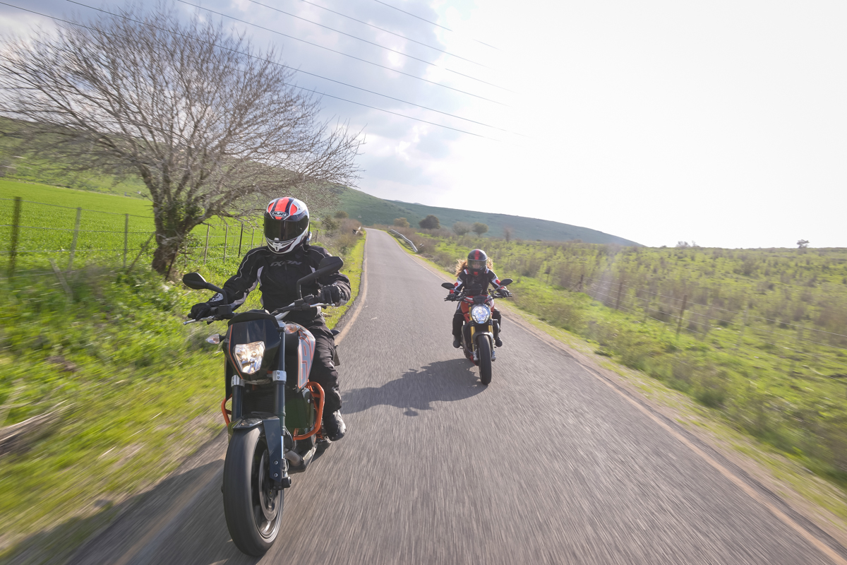 משם פשוט התגלגלתי לכבישים פחות ראשיים, ובשלב מסוים, כשהרגשתי מיצוי, עליתי בחזרה לכביש 6 וחתכתי הביתה בדיוק בזמן לפני שהגשם הפך למבול. למרות (ואולי דווקא) בגלל הפשטות של המסלול הרגשתי שאני חייב לחזור שוב במהרה ולסחוב איתי חברה טובה. שבועיים לאחר מכן חזרתי עם הילה שהגיעה עם המונסטר 1200S המבריק שלה ועם בועז שניצל את המסלול לסיבוב התרשמות על הבורגמן 650. לקינוח, בני דויטש דילג בין המושבים וצילם תוך כדי. חברה טובה, כבר אמרתי?