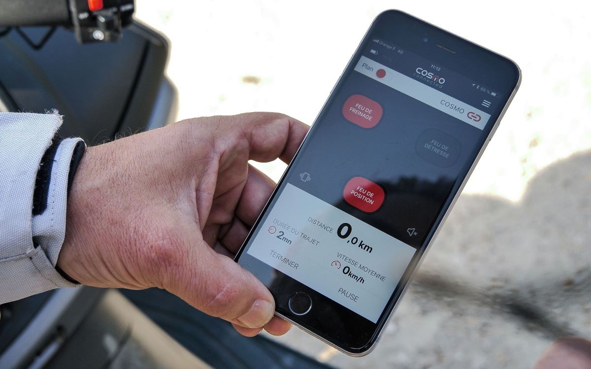 ה-Cosmo Connected מתממשק בחיבור קבוע אל הטלפון החכם ואל אפליקציה ייעודית באמצעות קישורית בלוטות', והוא מסוגל לזהות מקרי תאונה או נפילה מהאופנוע ולהעביר דיווח לרשימת אנשי קשר נבחרים, ובעתיד גם למוקד חירום ייעודי, כולל מיקום GPS.