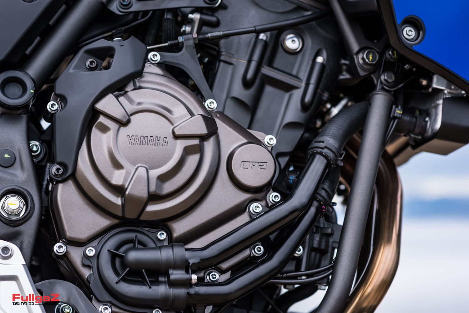 בבסיס הטנרה 700 נמצא מנוע ה-CP2 של ימאהה – הטווין המקבילי בנפח 689 סמ"ק שמגיע מה-MT-07. הוא מפיק כ-74 כ"ס וכמעט 7 קג"מ, והוא ידוע בגמישותו. הבחירה במנוע הזה מעניינת. מצד אחד זהו מנוע מצוין, אפילו אחד המנועים הטובים של ימאהה, שכן הוא גמיש, הוא חי ודינמי, הוא מעניין והוא מודרני. מצד שני, כמנוע של אופנוע כביש המשקל שלו לא נמוך, וזה משפיע ישירות על משקל האופנוע.