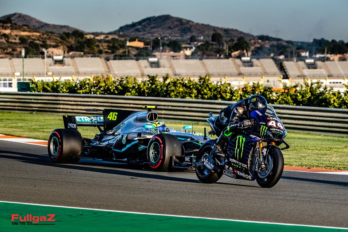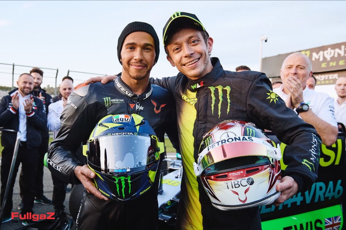 שש פעמים אלוף העולם בפורמולה 1, לואיס המילטון, ותשע פעמים אלוף MotoGP, ולנטינו רוסי האגדי, ערכו מפגש החלפת כלים במסלול ולנסיה.