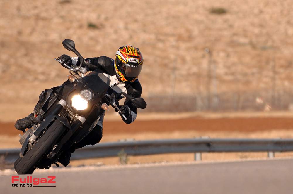 כי יש פה מנוע אדיר. יחידת כוח מופלאה. אבל שלא תחשבו שהאופנוע הזה הוא רק מנוע. ממש לא. מכלולי השלדה תומכים לגמרי בכל מה שיש למנוע להציע, והם עושים את זה בלי להתרגש. השלדה, העשויה ממסבך משולשי פלדה, קשיחה לגמרי, ולא נראה שיש משהו שיכול להוציא אותה מדעתה. לא עומסי כביש בכל אופן. גם המתלים קשיחים מאוד. זאת גם הסיבה שהאופנוע בקושי שוקע תחת משקלו העצמי ושל הרוכב.