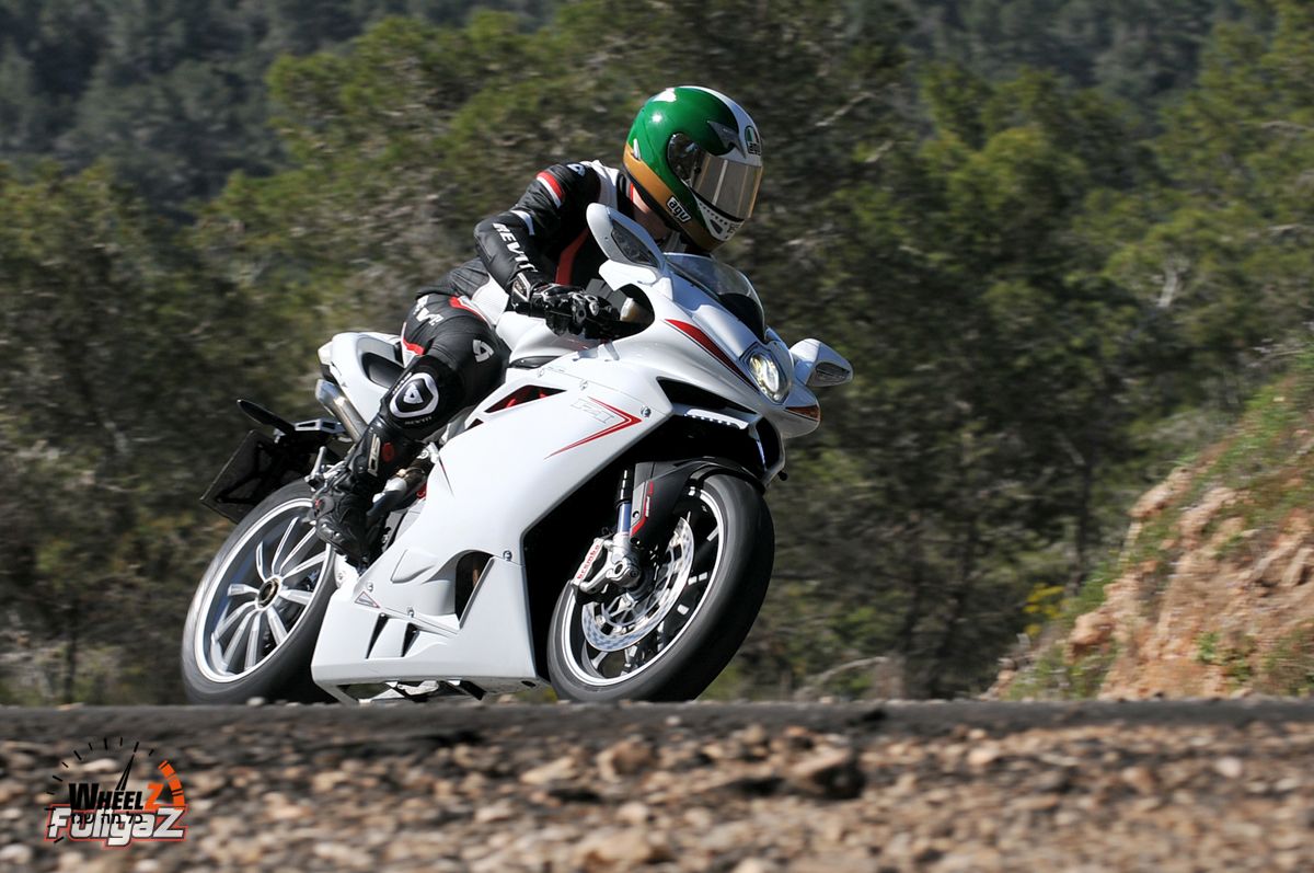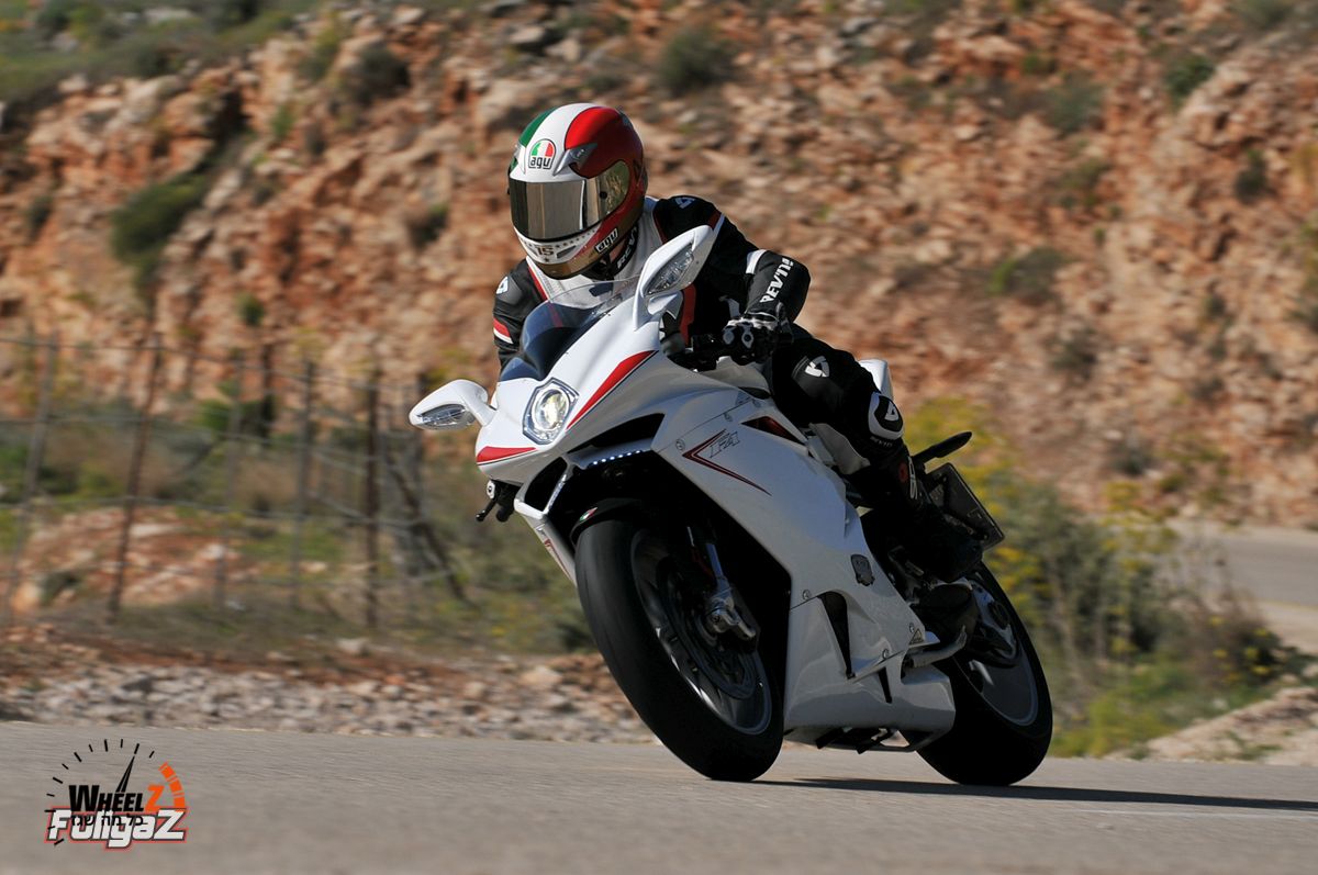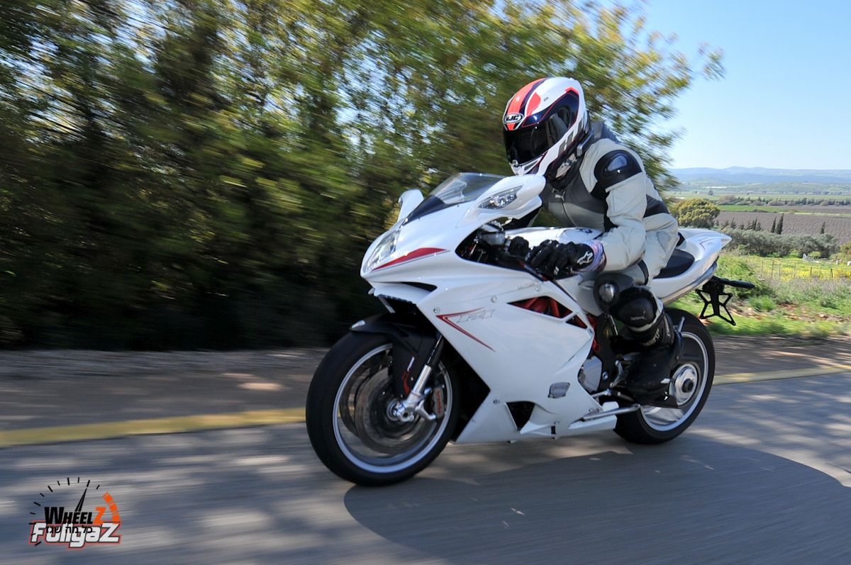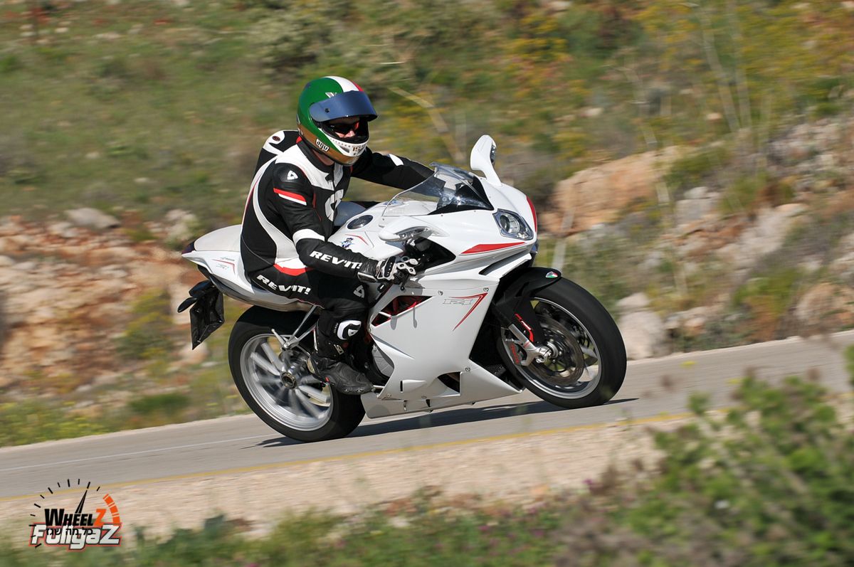 ה-F4 הוא אופנוע מסלול, למרות שהוא לא ממש נבנה כהומולוגציה של כזה, מאחר ו-MV לא השתתפה איתו בסופרבייק העולמי מעולם. הוא פשוט עובד במהירויות שכביש ציבורי והמאכלסים אותו לא מבינים. כל קימור, כל קו במיכל הדלק והחיבור של הרוכב למיכל נועד לא רק להיות יפה, אלא לתמוך ברכיבה מהירה והעומסים שנלווים אליה. בסוויפרים שיותר מכפולים מהמהירות החוקית, כל האופנוע עובד כדי להשאיר את ידיו של הרוכב משוחררות, בזמן שהמתלים הקשיחים עושים ניסים ונפלאות עם מה שקורה בכביש. מעבר על מהמורה במהירות גבוהה מעביר את העובדה שהיא הייתה שם, אך מבלי להזיז את האופנוע במילימטר מהקו שלו, כאילו המתלים מעבירים את התנועה רק מעל קו הגלגלים. כשחזקים על הגז יש תחושה של פרונט קליל, אך עם זאת מדויק ומלא בטחון, פשוט לתת לו עוד ועוד, לא דבר של מה בכך באופנוע של 195 כוחות סוס (בסדר, במנוע). ניתן לייחס חלק מהביטחון הזה גם למערכת בקרת ההחלקה שעובדת מצוין, ובמצב 2 מתוך 8 כמעט אף פעם לא מתערבת, אלא אם ממש מאתגרים את הפירלי סופר קורסה המעולים.