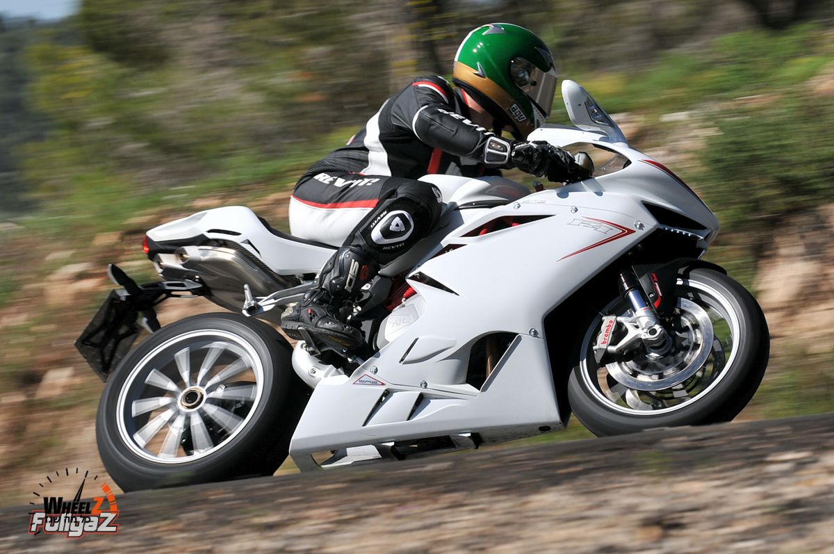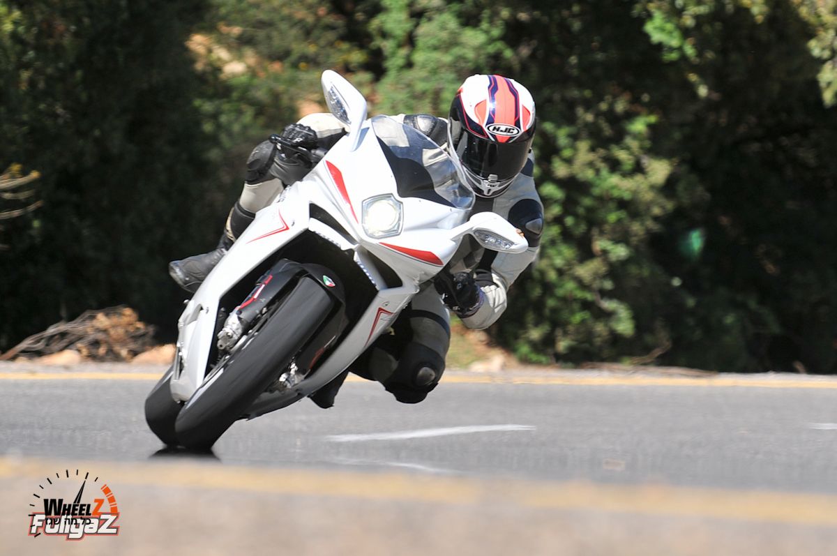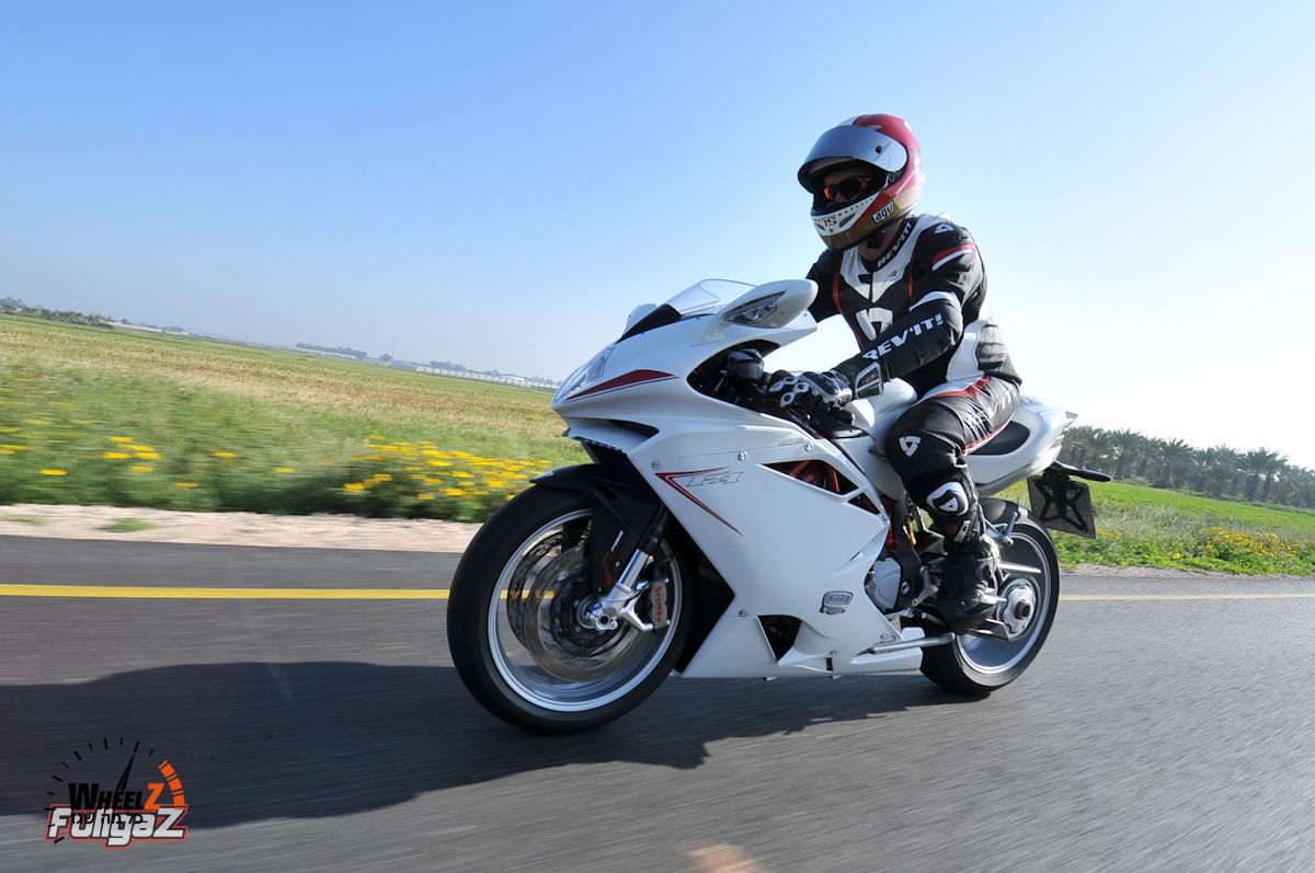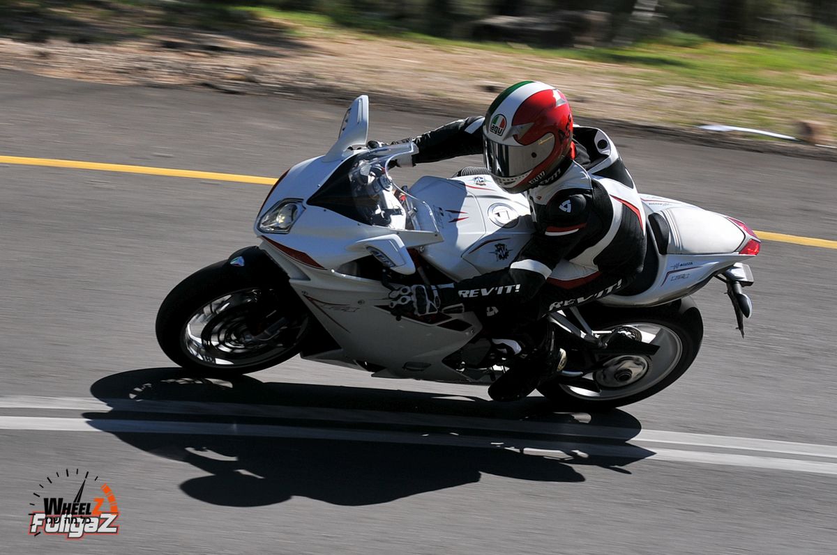 ה-F4 הוא אופנוע מסלול, למרות שהוא לא ממש נבנה כהומולוגציה של כזה, מאחר ו-MV לא השתתפה איתו בסופרבייק העולמי מעולם. הוא פשוט עובד במהירויות שכביש ציבורי והמאכלסים אותו לא מבינים. כל קימור, כל קו במיכל הדלק והחיבור של הרוכב למיכל נועד לא רק להיות יפה, אלא לתמוך ברכיבה מהירה והעומסים שנלווים אליה. בסוויפרים שיותר מכפולים מהמהירות החוקית, כל האופנוע עובד כדי להשאיר את ידיו של הרוכב משוחררות, בזמן שהמתלים הקשיחים עושים ניסים ונפלאות עם מה שקורה בכביש. מעבר על מהמורה במהירות גבוהה מעביר את העובדה שהיא הייתה שם, אך מבלי להזיז את האופנוע במילימטר מהקו שלו, כאילו המתלים מעבירים את התנועה רק מעל קו הגלגלים. כשחזקים על הגז יש תחושה של פרונט קליל, אך עם זאת מדויק ומלא בטחון, פשוט לתת לו עוד ועוד, לא דבר של מה בכך באופנוע של 195 כוחות סוס (בסדר, במנוע). ניתן לייחס חלק מהביטחון הזה גם למערכת בקרת ההחלקה שעובדת מצוין, ובמצב 2 מתוך 8 כמעט אף פעם לא מתערבת, אלא אם ממש מאתגרים את הפירלי סופר קורסה המעולים.