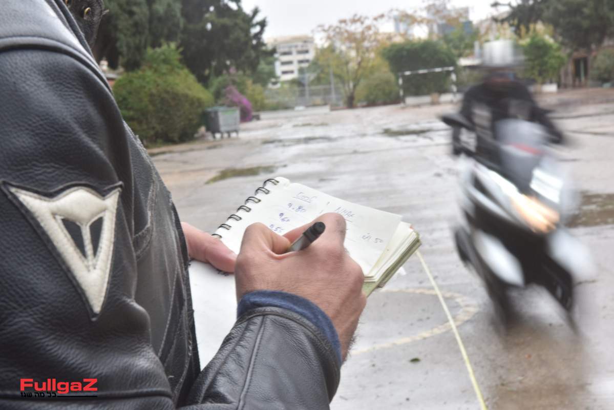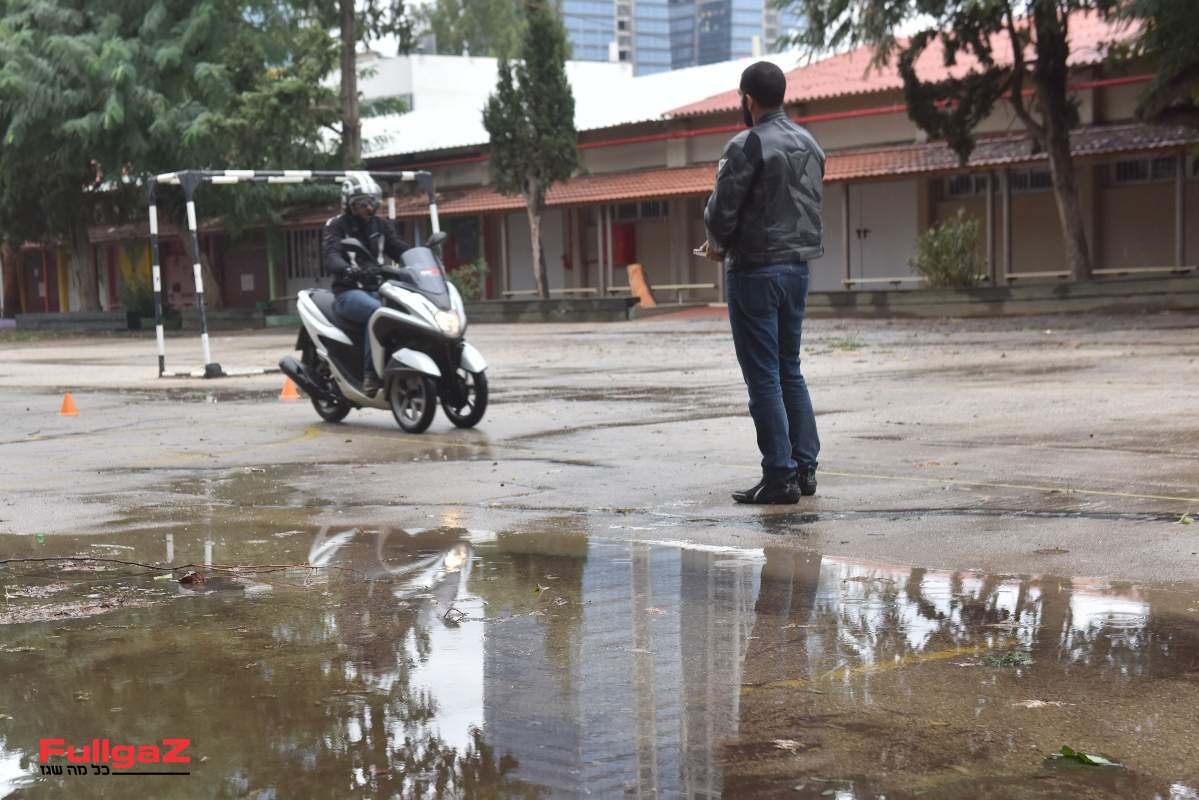 כדי לבדוק עד כמה תוספת האחיזה והיציבות באה לידי ביטוי, רכבנו סביב כיכר עירונית ממוצעת, כזו עם שיפוע שלילי (שיפוע שלא תומך את הרכב בפנייה אלא להפך, נוטה לכיוון השלילי ומגביר את חוסר האחיזה). בנוסף, בחרנו ביום גשום על מנת להקטין עוד יותר את רמת האחיזה ולהחריף את בעיית חוסר היציבות. רכבנו עם צמד הקטנועים – התלת-גלגלי והדו-גלגלי – סביב הכיכר, במהירות המקסימלית האפשרית לקבלת אחיזה ויציבות.