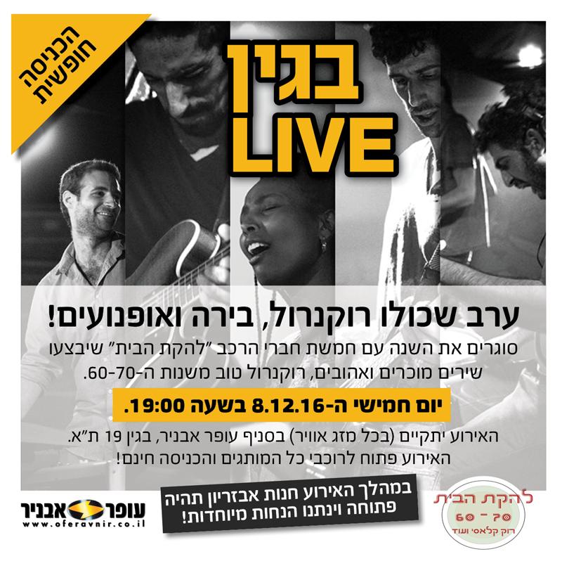 בגין LIVE – אירוע סגירת השנה עם חמשת חברי ההרכב 'להקת הבית' שיבצעו שירים מוכרים ואהובים, רוקנ'רול משנות ה-60 וה-70.