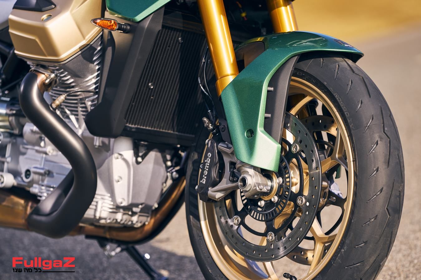 המנוע הוא וי-טווין עם גל ארכובה אורכי וזווית של 90° בין הצילינדרים, גל-זיזים עילי כפול ו-8 שסתומים – והחידוש, כאמור, הוא קירור הנוזל. לא סתם הדגשנו את קירור הנוזל, שכן זהו חידוש משמעותי עבור מוטוגוצי, שדוגלים בתצורת קירור אוויר למנוע. נפח המנוע עומד על 1,042 סמ"ק, והמנוע מפיק 115 כוחות סוס ו-10.6 קג"מ, כאשר 90% מנתון המומנט זמין כבר מ-3,500 סל"ד. יש מצמד רטוב מופעל הידראולית, והנעה דרך גל הינע.