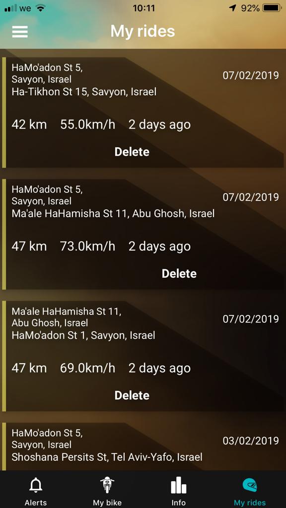 האפליקציה מתעדת את מסלולי הרכיבה בכביש ובשטח ברמת דיוק גבוהה, ומאפשרת לרוכב לשתף את מסלולי הרכיבה עם חבריו ברשתות החברתיות השונות, בקבוצות וואטסאפ, בדואר אלקטרוני וכו'. האפליקציה ניתנת להורדה בחינם בחנויות אפל וגוגל, כך שניתן לקבל עזרה בחירום גם ממי שאין ברשותו את מערכת האיתור.
