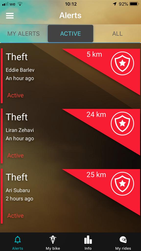 הרוכב יכול להגדיר מראש חבר, אשר יהפוך למעשה ל'מלאך שומר', כך שבמקרה של גניבה או תאונה (המערכת מסוגלת לזהות גם מקרי תאונה) תישלח התראה מיידית אליו לשם הגשת עזרה הדדית. בנוסף, הרוכב יכול להגדיר קבוצת רוכבים שבמקרים אלה יקבלו גם הם התראה, וכן תישלח התראה גם לרוכבים נוספים אשר התקינו את האפליקציה ונמצאים בקרבת המקום. המערכת תאפשר לקבוצות רוכבים וחברים – בכביש ובשטח – ליצור קהילות המשתפות פעולה להעלאת רמת הביטחון והבטיחות של חבריה ושיתוף גורמי האכיפה במידע בזמן אמת.