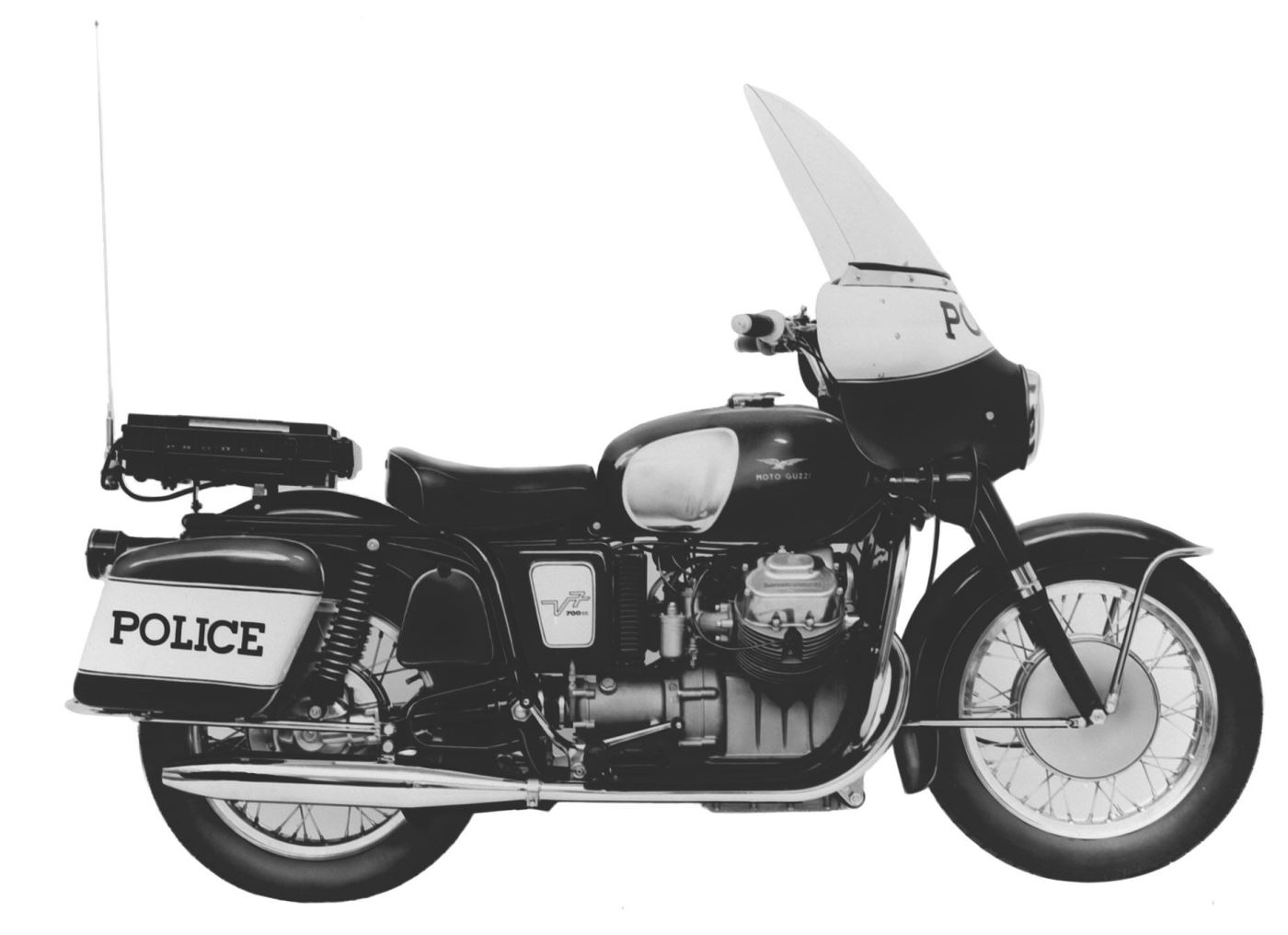 חטיבת ה-'California Highway Patrol' ומחוזות נוספים במשטרת ארצות הברית החלו לרכוש באופן קבוע את הדגמים, כאשר השוטרים העדיפו את הדגם הזה על-פני ההארלים המקבילים שהיו בשירות, כאשר עוד לפני כן, בשנת 1971, הציגו במוטוגוצי גרסה אזרחית אשר נקראה בפשטות – קליפורניה (בתמונה בראש הידיעה – דגם 1974). המנוע היה וי-טווין עם 90° בין שני הצילינדרים ו-2 שסתומים לצילינדר, מקורר אוויר ושמן (רק לשנת 2022 יציגו האיטלקים לראשונה מנוע מקורר נוזל). הנפח המקורי צמח בגרסה השנייה ל-844 סמ"ק עם 59 כוחות סוס ב-6,800 סל"ד, מהירות מרבית של 160 קמ"ש, הינע סופי באמצעות גל-הינע ומשקל רטוב של 245 ק"ג. מערכת הבלימה הייתה משולבת, כאשר ידית הבלם הקדמית הפעילה את הדיסק הימני, ואילו הבלם אחורי הפעיל גם את הדיסק הקדמי השמאלי והדיסק האחורי. הפטנט נחשב למתקדם במחצית שנות ה-70.