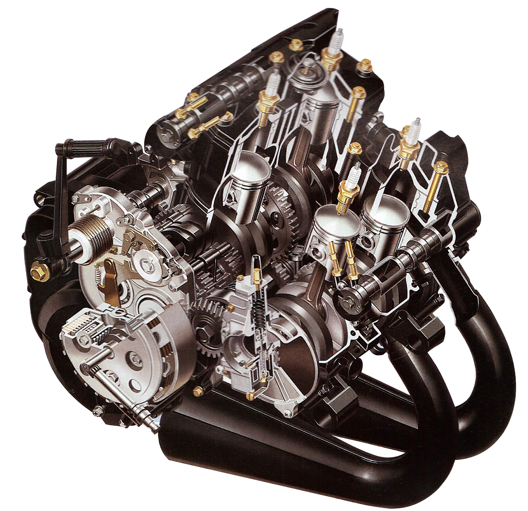 המנוע הייחודי של ה-RG500 עם 2 גלי ארכובה