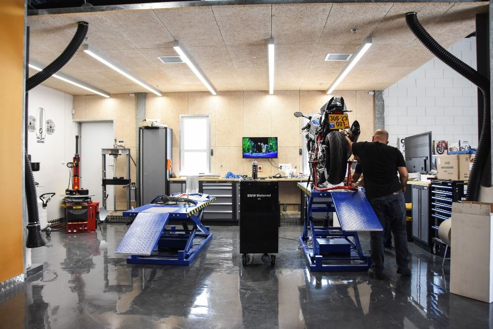 המוסך עצמו מצויד בכל הציוד והכלים הייעודיים של ב.מ.וו, וכן בחיבור למחשב המרכזי של ב.מ.וו העולמית כחלק ממערך מוסכי השירות של ב.מ.וו. המשמעות היא שגם אופנועי ב.מ.וו גדולים ויקרים, שדורשים חיבור און-ליין למחשב וכן כלים ייעודיים לתחזוקה כזו או אחרת, יכולים להגיע לבוטיק האופנועים ולקבל כל סוג של שירות.