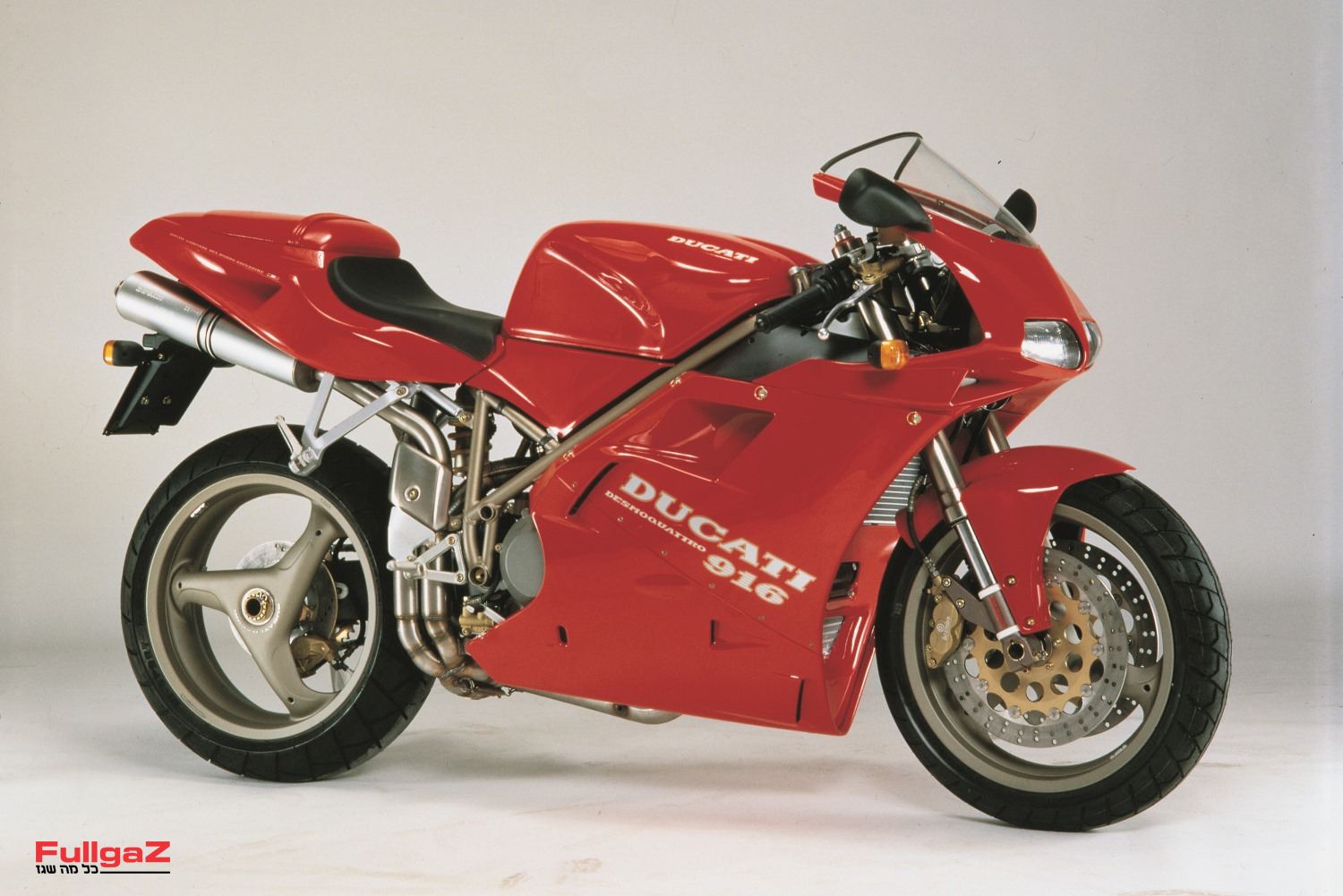 הדוקאטי 916 החליף בשנת 1994 את ה-888 המרובע והשאיר הרבה לסתות על הרצפה. חובבי המכוניות באותם השנים היו תולים פוסטרים של הלמבורגיני קונטאש או הפרארי טסטרוסה, אולם ה-916 תפס מיד מקום בקיר של כולם. יצירת המופת, פרי עיצובו של מעצב העל מאסימו טמבוריני, הציגה קווים נקיים, פנס קדמי כפול, שלדת צינורות גלויה לעין, זרוע אחורית חד-צדית, מזלג שוואה הפוך ומעל הכל – סעפת מתפתלת שמסתיימת בצמד אגזוזים מתחת למושב האחורי. מדהים – גם 25 שנה אחרי.