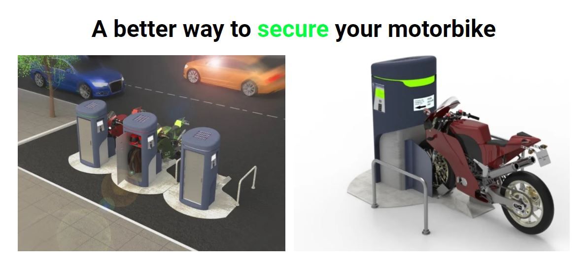 על-פי נתונים שפורסמו באתר של חברת Bikers Guardian, נגנבים באנגליה מדי שנה כ-40,000 (!) כלים דו-גלגליים, כשהנזק הכלכלי כתוצאה מכך נאמד בכ-3 מיליון לירות שטרלינג בחודש. הפתרון לשיטתם הוא מעין תא חניה ציבורי המאפשר לקבע את הגלגל הקדמי של הכלי בנקודה מאובטחת ולמנוע גניבות מזדמנות. תא החניה מאפשר גם לאחסן ציוד רכיבה בסביבה נשלטת טמפרטורה, ולשמש גם כנקודת טעינה לכלים חשמליים (על-פי נתוני החברה מדובר על 50,000 כלים חשמליים שנמכרים באנגליה מדי שנה). בעל הכלי יכול לצפות באופנוע שלו בכל רגע נתון דרך מערכת מצלמות אבטחה שמחוברות לאפליקציה ייעודית, דרכה גם ניתן להזמין חניה ולשלם עליה.