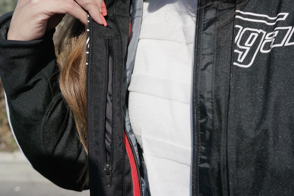 בתוך המעיל יש כיס פנימי בגובה החזה, אטום למים ונוח לדברים קטנים כמו כרטיס אשראי או ארנק קטן. בפנים יש כיסים גם לבטנה עצמה וגם למעיל ללא הבטנה – מושקע וראוי לציון. בכיסים הצלחנו להכניס סמארטפון גדול בלי בעיות מיוחדות, ובסך הכל יש פה יותר כיסים ממה שכנראה תצטרכו. בחצאית המעיל יש קליפסים המאפשרים לחבר את המעיל למכנס, או רוכסן לחבר למכנס תואם של החברה.