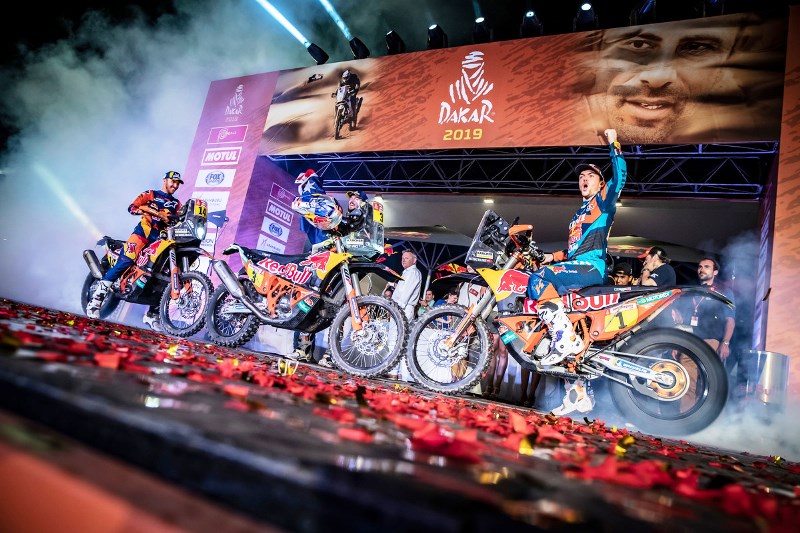 השנה גם במקומות 2 ו-3 נמצאים רוכבי ק.ט.מ, כשבמקום השני מסיים מתיאס ונקלר – מנצח הדקאר של שנה שעברה, ובמקום השלישי סם סנדרלנד – מנצח דקאר 2017. אבל יותר מזה – במקומות 4 ו-5 זכו פבלו קואינטנילה ואנדרו שורט, צמד רוכבי הוסקוורנה הרשמיים. כזכור, הוסקוורנה היא מותג של ק.ט.מ, ולמרות שמדובר ב-2 קבוצות שונות – הרי שמדובר על אותו האופנוע – ק.ט.מ 450 ראלי, כשבמקרה של הוסקוורנה הוא פשוט צבוע בלבן ומקבל את השם הוסקוורנה FR450 ראלי.