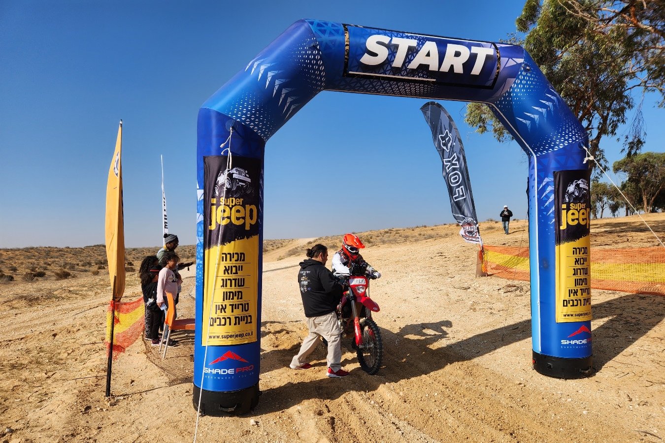 זינוק. חודשים ארוכים של הכנות מתנקזים לרגע המזוקק הזה. מזג האוויר מדהים, עם שמש בשמיים הכחולים וטמפרטורה נמוכה אבל נוחה לרכיבה, ובעיקר ימים ספורים אחרי מכת גשם גדולה שהציפה את המדבר ויצרה תנאים חלומיים של פעם בשנה. תוואי השטח משתנה כל הזמן, ואת הנופים האלה אני מאוד אוהב. אושר גדול! אחרי כמה קילומטרים ההיתכנות והלחץ התחלפו בריכוז, באנדרנלין, וגם בצרחות של אושר בקסדה. לזה חיכיתי ולזה התאמנתי כל כך הרבה!