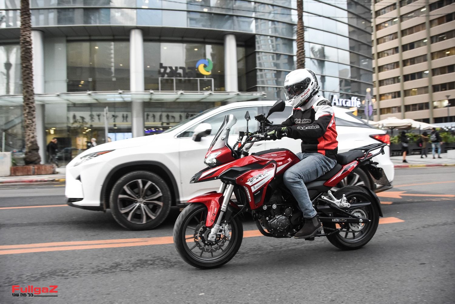 ברכיבה עירונית באים לידי ביטוי כל יתרונותיו: המנוע גמיש ומאפשר להאיץ ביציאה מרמזורים או כשהכביש נפתח, השליטה על הכלי קלה מאוד, ובזכות זווית צידוד הכידון הגדולה בשילוב של גובה המושב ומשקל האופנוע – ההשתחלות בין מכוניות היא קלה ביותר, מהקלות שפגשנו.