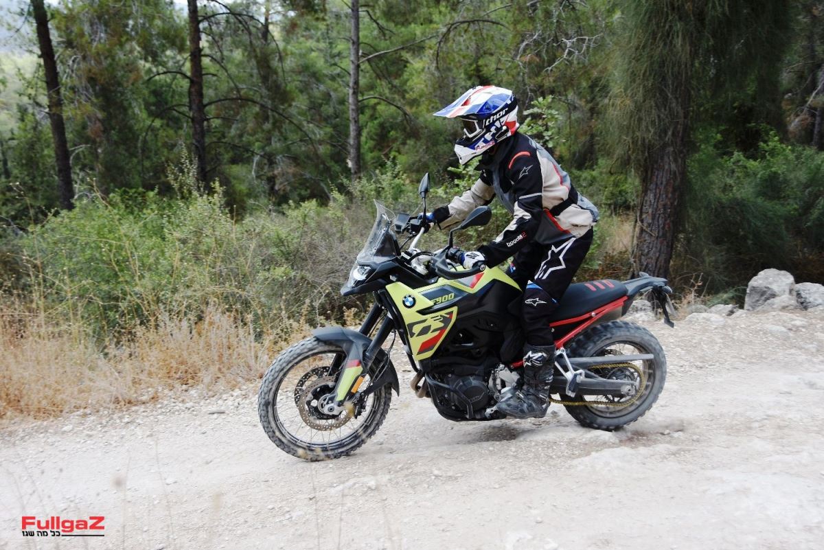 כשהקצב עולה כל המכלולים התומכים נמצאים שם לעזור. בין אם זה הבולמים שלא מתעוותים בעומס ומאפשרים לבלום חזק אל תוך הפנייה, להטות במהירות ונחישות, להיצמד בדיוק אל הקו הנדרש ולצאת החוצה בביטחון מלא. לבימר שאיתנו יש יכולות גבוהות בכבישים מפותלים, שקצת הופרעו בגלל צמיגי השטח שהורכבו על אופנועי המבחן. כל מה שכתבנו עד כה הוא מה שגרם ל-GS לפרוח בשטח. תנוחת הרכיבה, המוביליות של הרוכב על האוכף, המנוע, הבולמים, הבלמים. ב.מ.וו רוצים שתרדו לשטח ועשו כמעט הכל כדי לאפשר את זה. למה כמעט? כי הם עדיין דבקים בחישוק 17″ מאחור שמעט מגביל את יכולות הספיגה ומעבר המכשולים. גם בשטח הוא קשוח, ובגלל זה דווקא מי שירכב מהר וחזק ירגיש יותר בשליטה מאשר מי שרק יתגלגל ויהנה מהנוף. הוא פחות לטיולים, למרות שכמובן שאין בעיה לעשות את זה, ויותר לרכיבות כיף מלאות אדרנלין.
