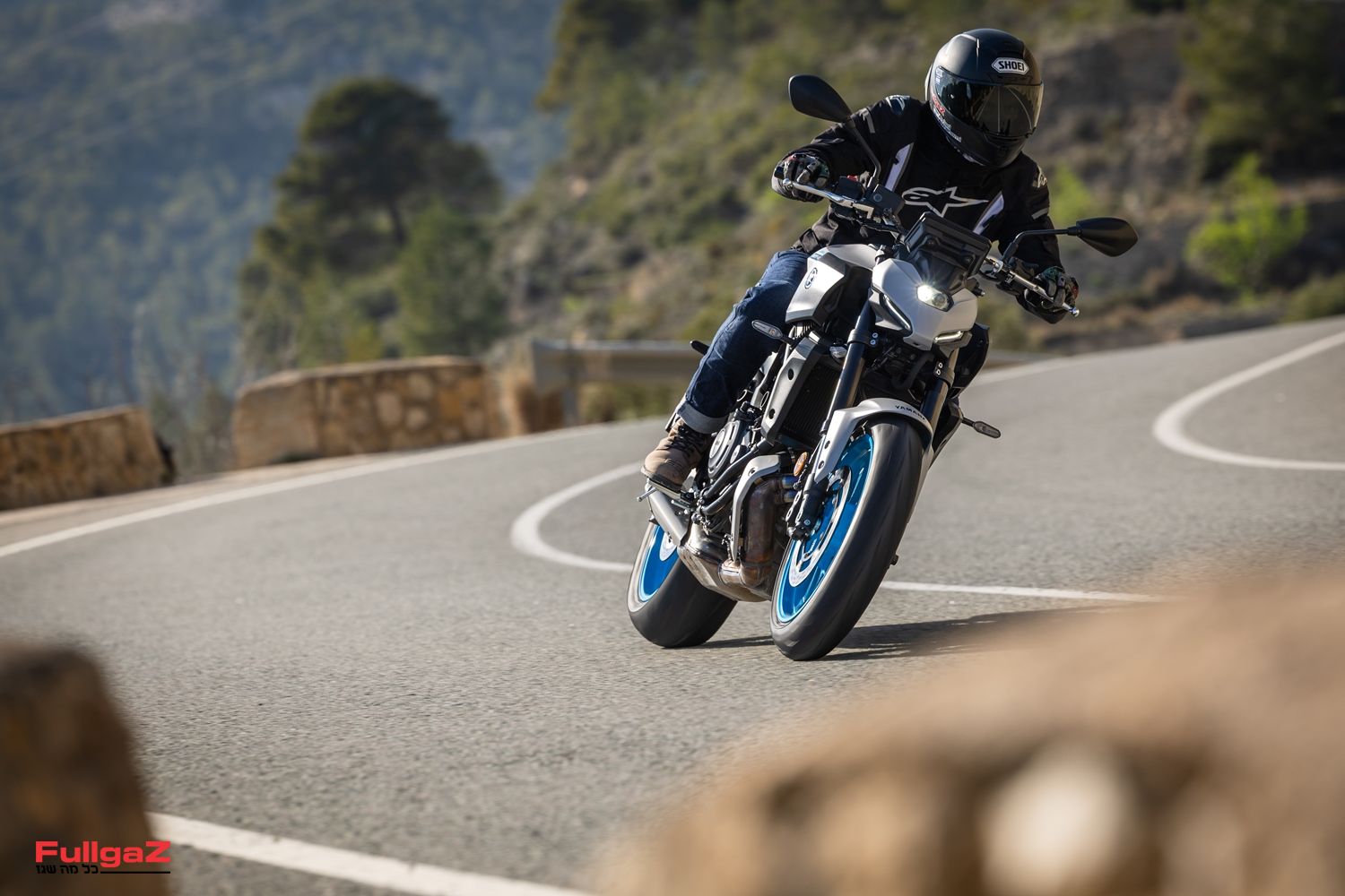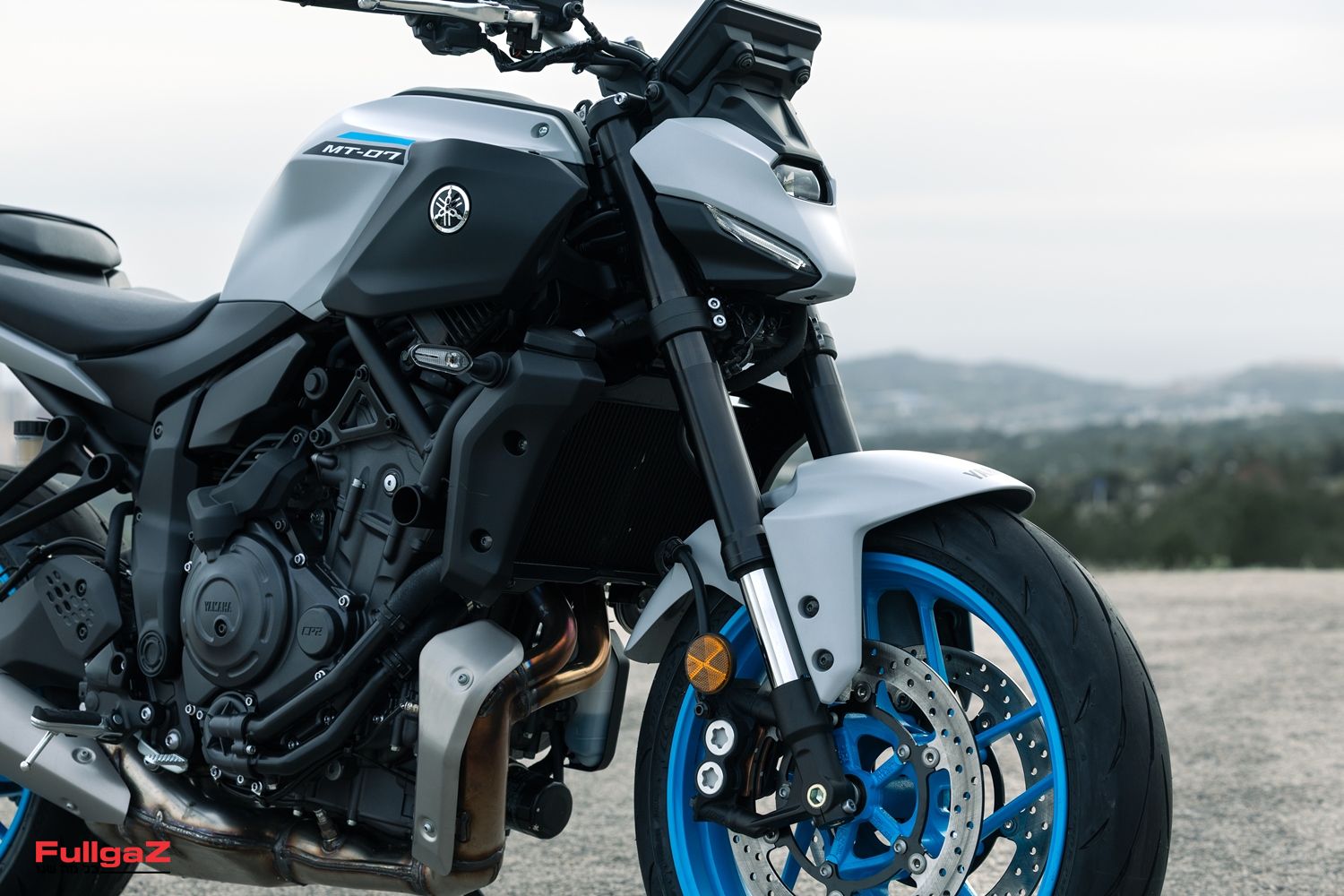 אבל חוץ מהמנוע, השינויים העיקריים מורגשים דווקא בהתנהגות הדינמית. כבר כתבנו בעבר שההתנהגות של ה-MT-07 טובה במהירויות נמוכות ובינוניות, אך בגלל מערכת המתלים הפשוטה במהירויות גבוהות או תחת עומסים גבוהים הוא קצת מאבד איזון. כעת בדור הרביעי ה-MT-07 משתפר מאוד גם בתחום הזה. המזלג ההפוך מלפנים לא יותר קשיח מבחינת קפיצים וספיגה, אבל הוא הרבה יותר קשיח מבחינת מבנה והתנגדות לעיוות ופיתול, ולכן אפשר לרכוב הרבה יותר חזק, להיכנס לפניות תחת בלימות חזקות או לרכוב מהר יותר על כבישים משובשים – וה-MT-07 ישמור היטב על היציבות שכל כך הייתה חסרה לו.