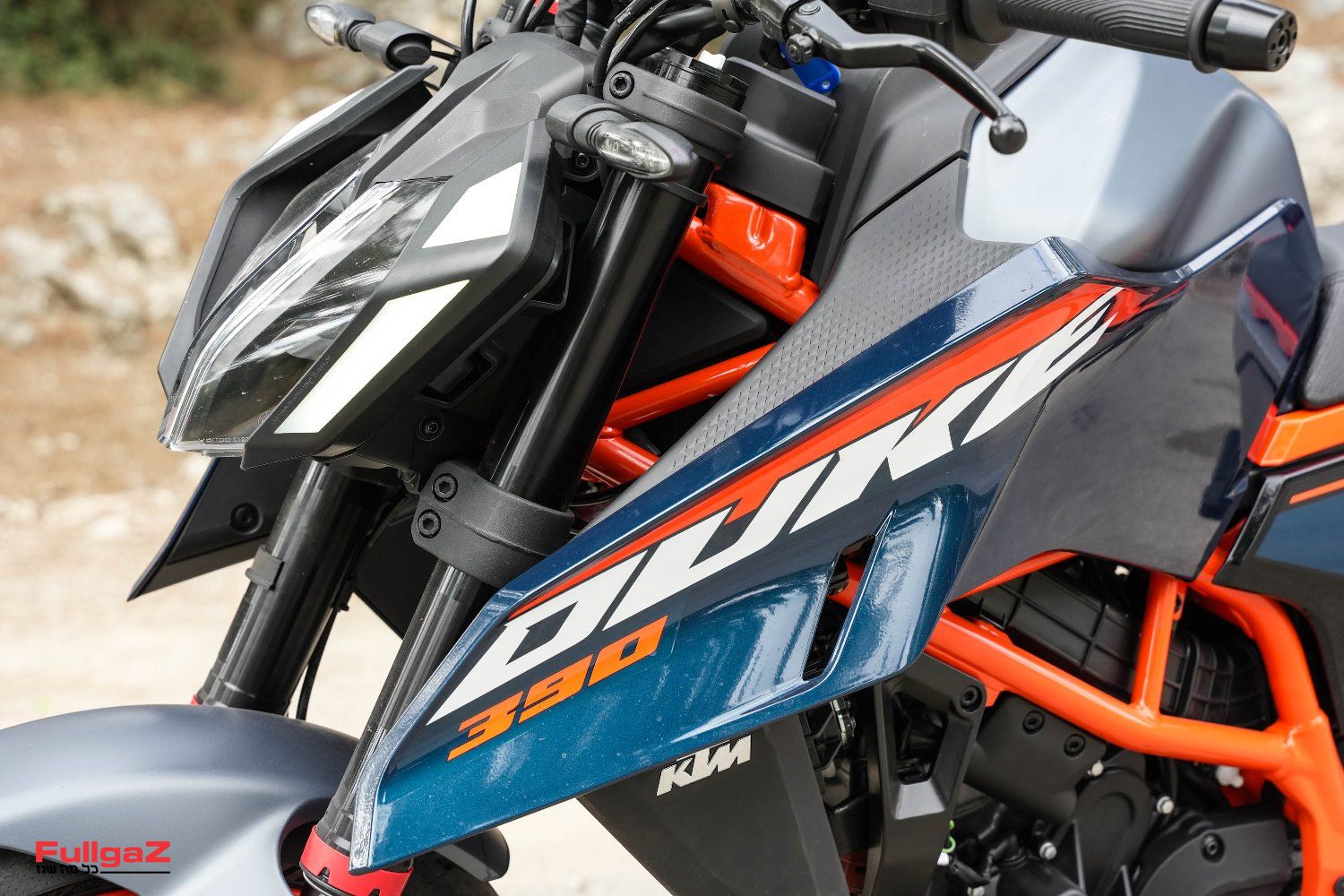 מבחינת התנהגות דינמית, גם כאן השינויים המכאניים הופכים את צמד ה-390 דיוק לטוב יותר מבעבר, כשהשיפור בבולמים בהחלט מורגש לטובה – ובעיקר בפרונט. ניכר שההידראוליקה טובה יותר, וזה בא לידי ביטוי ביציבות גבוהה יותר ובקשיחות של הפרונט – בדגש על יכולות ספורטיביות. הפרונט הזה סופג בקלות בלימות חזקות אל תוך הפנייה בכבישים מפותלים, והוא נוסך הרבה מאוד ביטחון ברוכב. הבולם האחורי גם הוא שופר, אבל כצפוי בסוג זה של אופנועים זולים הוא בינוני בלבד, והוא צוואר הבקבוק של היכולות הדינמיות. כשהאספלט מפולס הוא יתנהג טוב מאוד וישמור על יציבות, אבל כשהאספלט מתחיל להשתבש הבולם האחורי הוא הראשון שייצא מאיזון ויגרום לנדנודים של האופנוע. כאמור, לא יוצא דופן בקטגוריה.