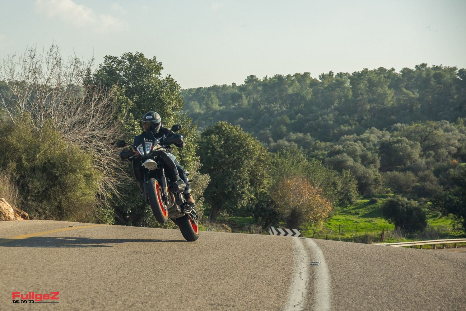 לקלות הרכיבה תורמות הבקרות האלקטרוניות. ניהול המנוע, למשל, איכותי מאוד ונשלט – גם בתגובת המצערת האגרסיבית שעליה רכבנו במהלך המבחן. יש גם בקרת אחיזה להטיה (שגם היא הייתה מנותקת ברוב שלבי המבחן, ואם לא מנותקת אז על רמת ההתערבות הנמוכה ביותר), ויש ABS להטיה הכולל מצב סופרמוטו שמבטל את התערבות ה-ABS על הגלגל האחורי – שזה המצב עליו רכבנו במהלך המבחן. בקרה כיפית במיוחד היא בקרת ההחלקה של הגלגל האחורי תחת בלימה, שדרכה אפשר לבחור כמה החלקה הצידה תתאפשר לגלגל האחורי במהלך סלייד, וליהנות מהחלקות זנב הנשלטות על-ידי האלקטרוניקה.