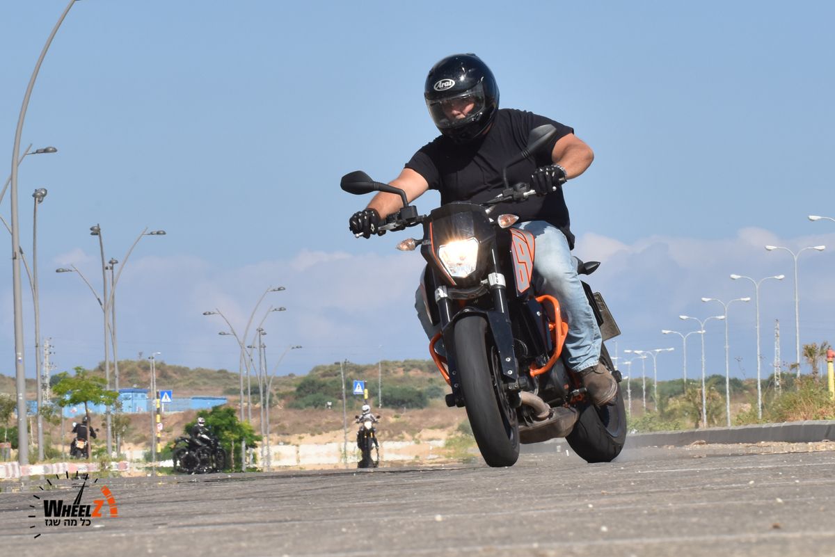 אלי מתחיל עם ה-R1200GS. החלק הראשון, בו הוא נדרש לבלום על ידי סחיטה הדרגתית של הבלמים, הוא קל יחסית. מה שלוקח לו קצת זמן זה להתרגל להגיע לנקודת הבלימה כל פעם ב-100 קמ"ש על פי ה-GPS ולא לבלום מוקדם מדי. בנוסף, בלימות שבהן הוא בולם חזק מדי ומפעיל את ה-ABS נפסלות (הוא גם מרגיש ומדווח על זה, וגם רואים ושומעים את זה מהצד); אנחנו מחפשים בלימה מקסימלית ללא השתלבות של ה-ABS. תוך מספר לא רב של בלימות שהולכות ומתקצרות, הוא מתייצב על מרחק בלימה אחיד בכל פעם, בלי 'תקתוקי' ה-ABS. ממוצע המרחק עומד על 43.6 מ'.