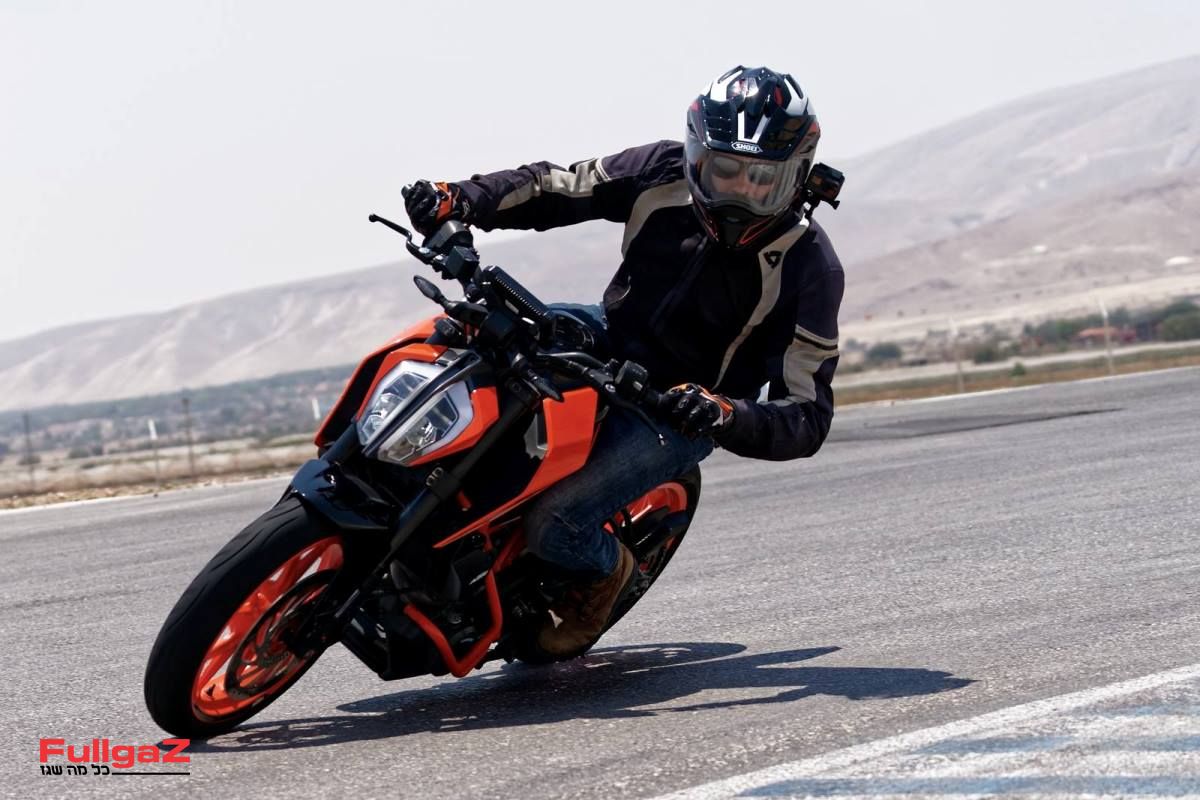 שלושים שניות לאחר מכן אנחנו מגיעים לפנייה של אספלט חלק עם כלום אחיזה, אחת כזו שעל אופנוע רגיל מכניסה את החושים שלך למצב כוננות גבוה. אבל הנייקן הוא סיפור אחר, וקיבלנו הוראה ברורה – לדחוף אותו קצת יותר מהרגיל. אז דחפתי, והרבה. הילוך שני, פול גז אגרסיבי ומבט עמוק לתוך הפנייה. האחורי מאבד את עצמו לדעת ומנסה לעקוף את השניים שמקדימה. אבל הפרונט נטוע על הקו ואפילו לא מתרגש מהדרמה שמתחוללת מאחור. קלי קלות ולא מעט כיף.