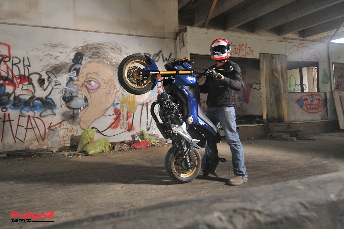 השילוב הזה של אופנוע כזה קטן פיזית עם מנוע כזה לא מאיים ומכלולים איכותיים יחסית, פשוט מבקש את זה שישתוללו עליו. זה מתחיל בווילי קטן פה, נעילה של גלגל אחורי שם (שמצריכה דריכה חזקה על הבלם החלש), ולאט לאט זה כבר הופך לחרג'עת רבתי, או כמו שקוראים לזה במחוזותינו – השתחרר הקוף. מסתבר שיש סיבה לכך שהונדה הרשתה לעצמה לצאת מהקימונו וקצת להשתחרר, ולשחרר סרטון שמתאים יותר לק.ט.מ סופרדיוק. הוותיקים מביניכם אולי זוכרים שממש לא לפני הרבה שנים נגנז סרטון תדמית של ק.ט.מ של דיוק משתולל ברחובות עיר יפנית ומשאיר יפנים פעורי פה. נראה כי גם ביפן מתחלף לו דור.