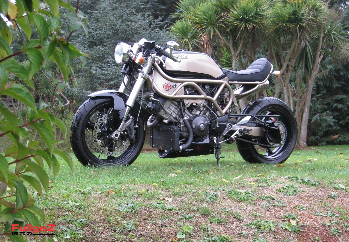 הנה מתחיל לו עוד לילה אינטסיבי של פורנוגרפיה באתר Thebikeshed.cc. האתר של Dutch Von Shed מתמקד בעיקר בהצגת אופנועים שנבנו על ידי בונים פרטיים ופחות כאלה שבקעו מסדנאות מקצועיות. לפתע, בין שלוק בירה לפירורי דוריטוס על החולצה, העיניים קולטות משהו מיוחד בין מיוחדים. מכסה הקלאץ' נראה מוכר מאוד אך לא סביר באופנוע שכזה. קליק מהיר מגלה שאכן לא טעינו. מדובר במנוע של הונדה VTR1000Fפיירסטורם, אופנוע שיש לו פינה לוהטת אצלנו בלב, אך אין זכר לשום דבר אחר מהאופנוע המקורי. חיש קל מיילים עשו דרכם לארצות קרות יותר והנה לפניכם – סיפורו של הנוכל של רוי. או בשמו הלועזי – Roy’s Rogue.